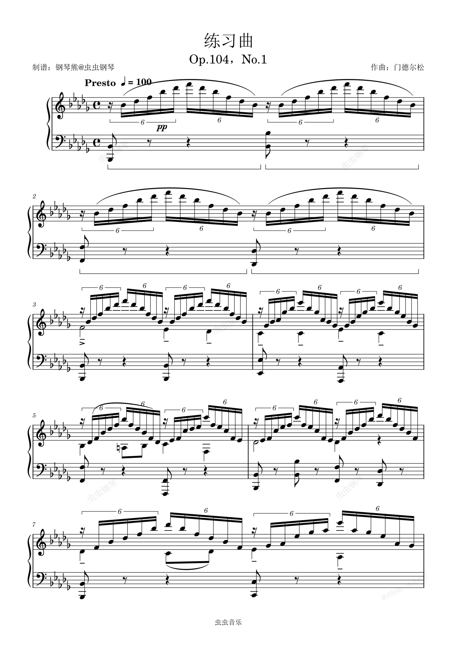 钢琴谱:天音 九级 肖邦练习曲Op.104,No.1