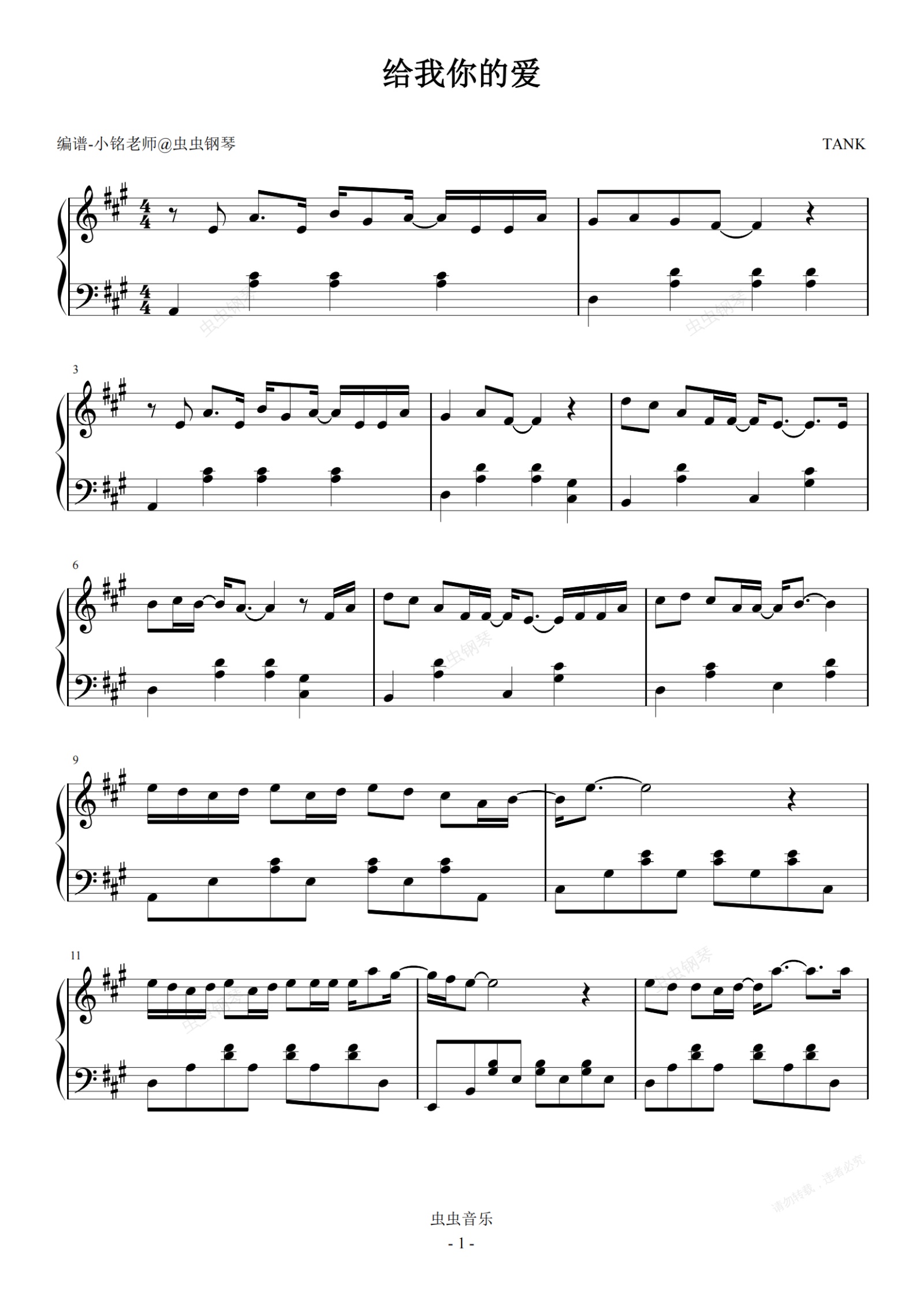 钢琴谱:给我你的爱【原调 简易】