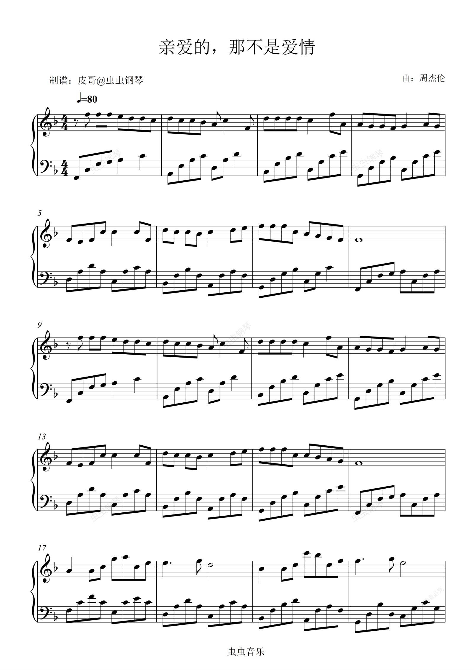 钢琴谱:亲爱的,那不是爱情 零基础版本