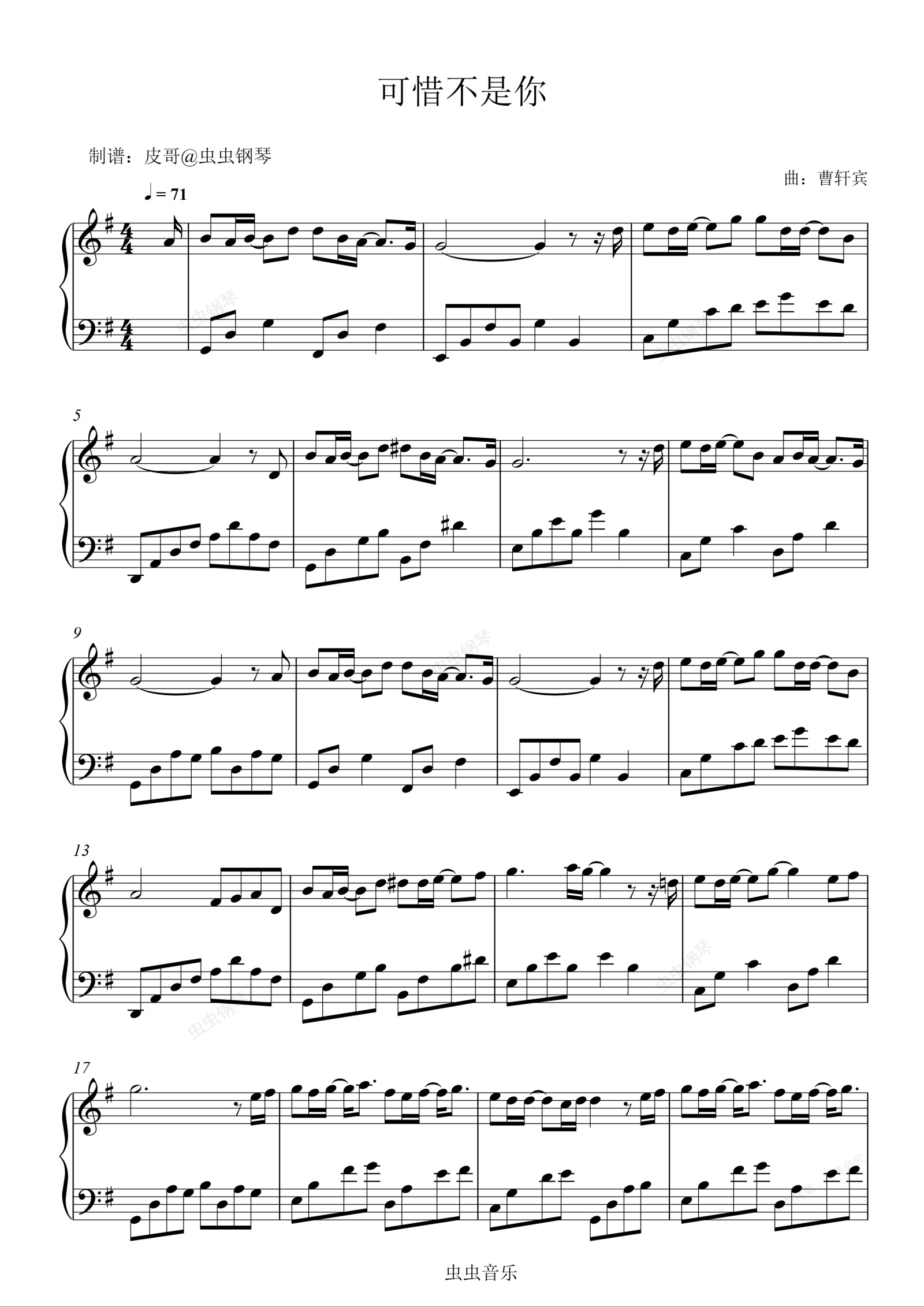 钢琴谱:可惜不是你 零基础版本