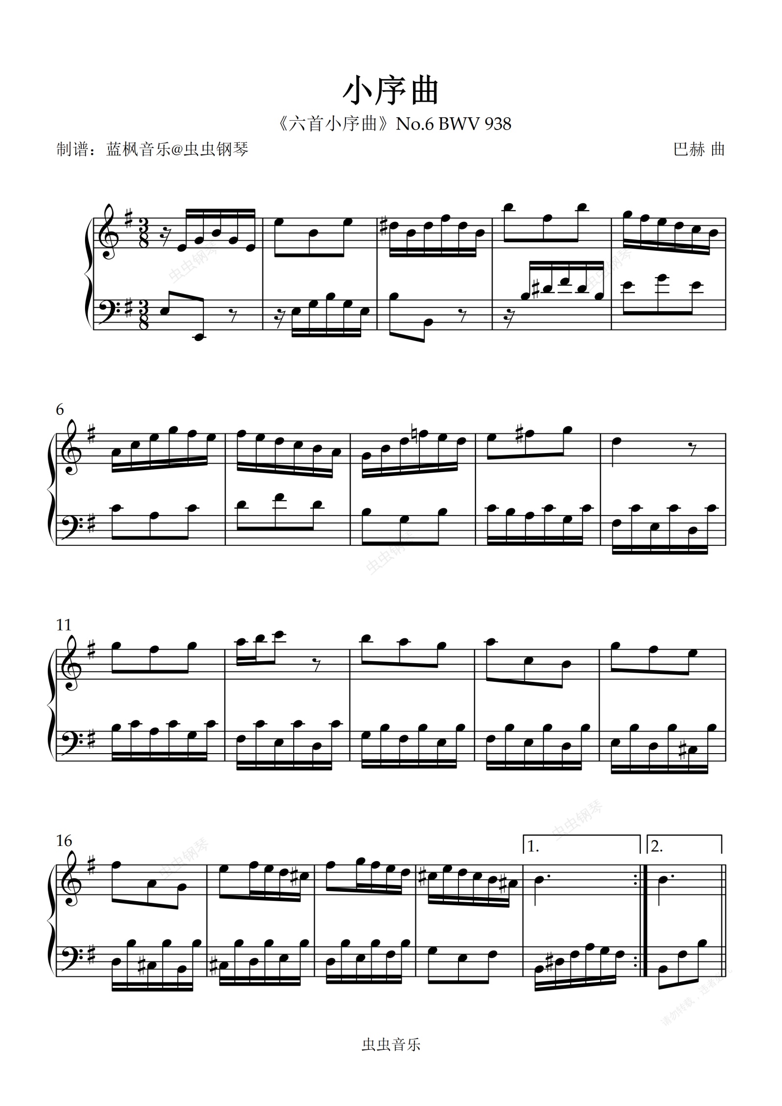 钢琴谱:小序曲《六首小序曲》No.6 BWV 938