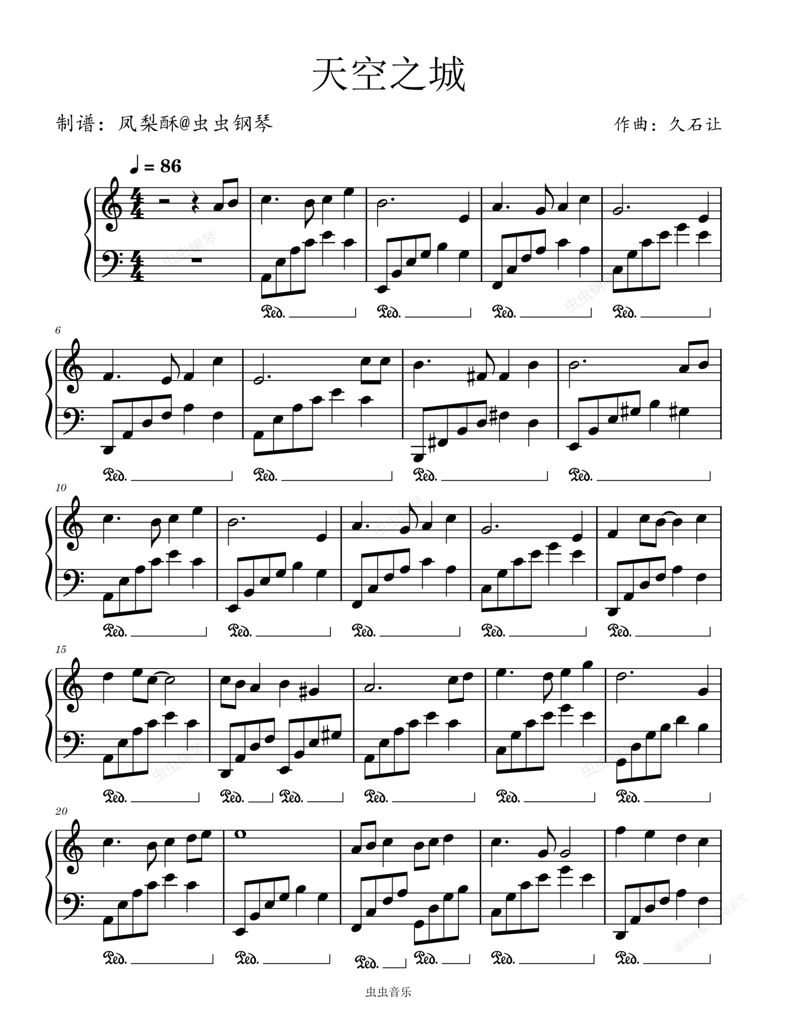 钢琴谱:天空之城—久石让 好听初级易上手