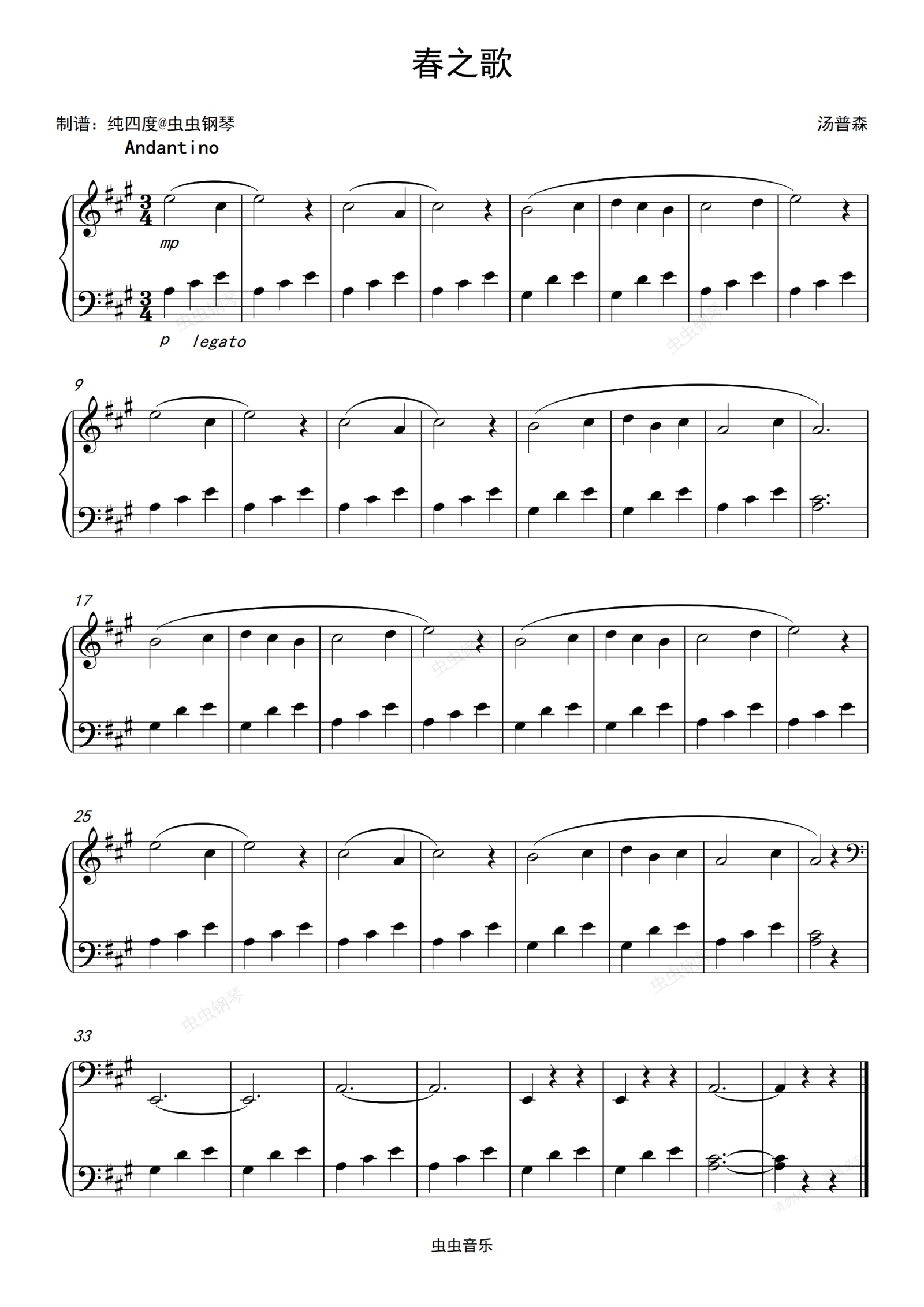 钢琴谱:春之歌(汤普森现代教程)