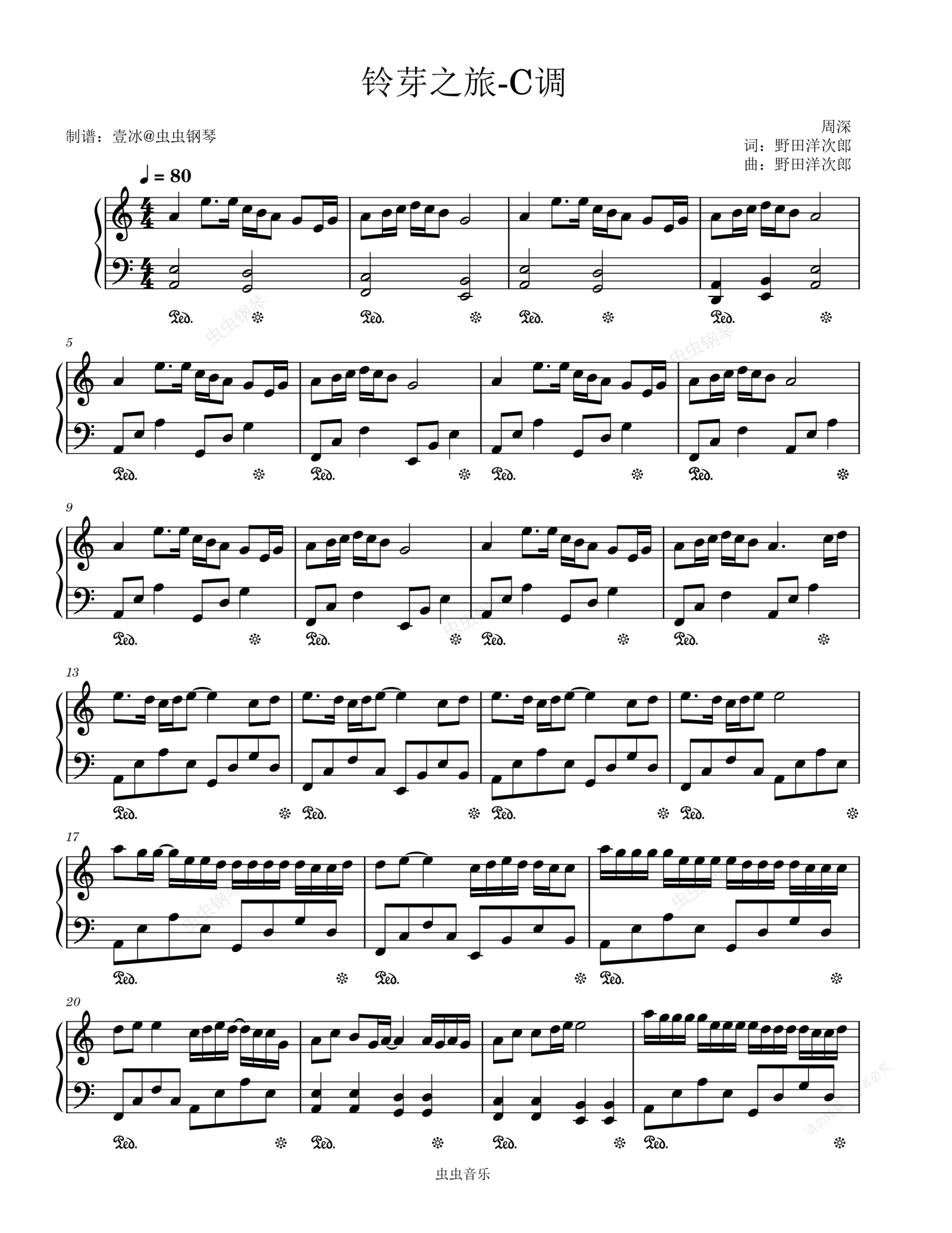 钢琴谱:铃芽之旅//《铃芽之旅》电影同名中文主题曲-C调