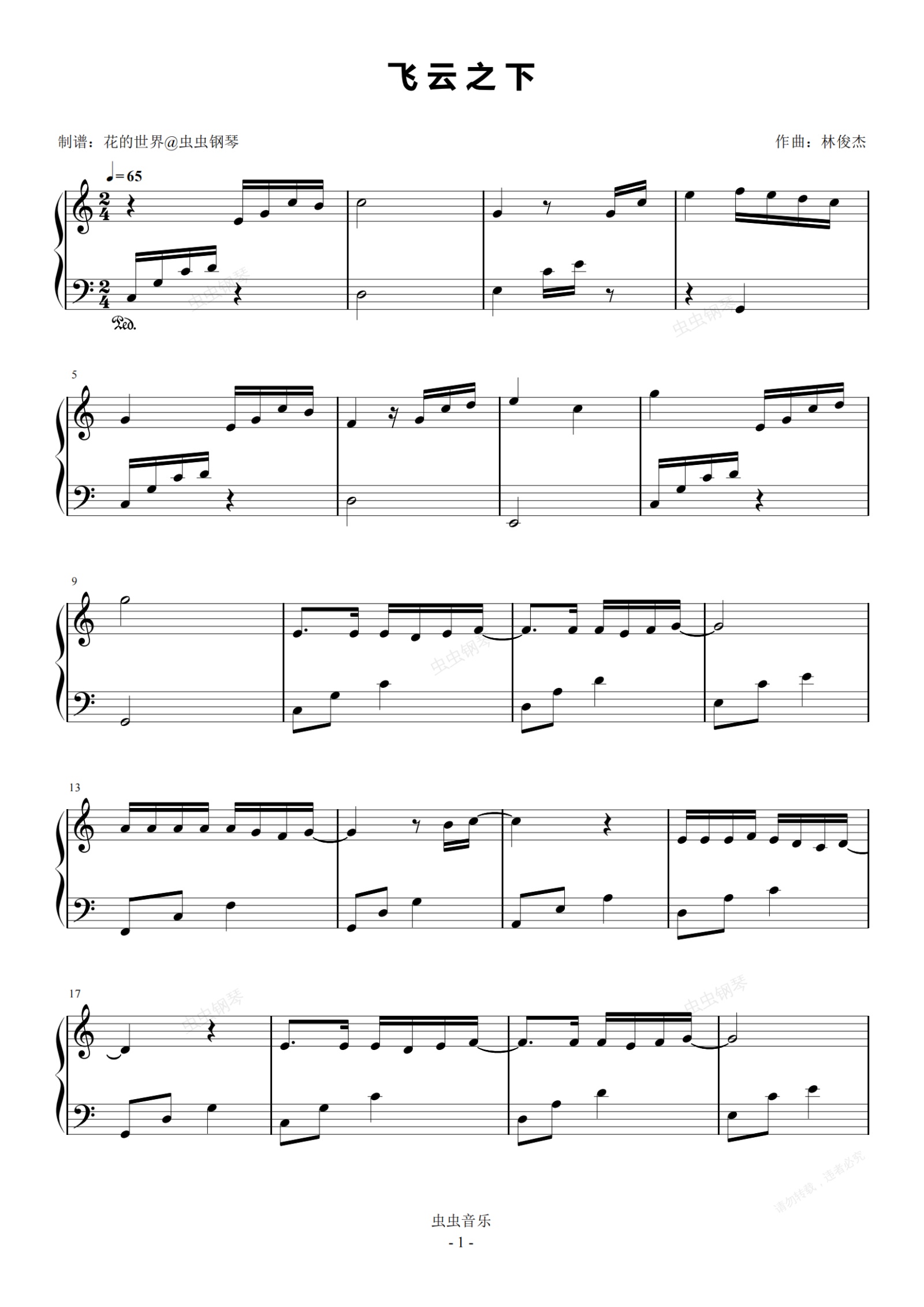 钢琴谱:飞云之下 C调简易版 林俊杰/韩红