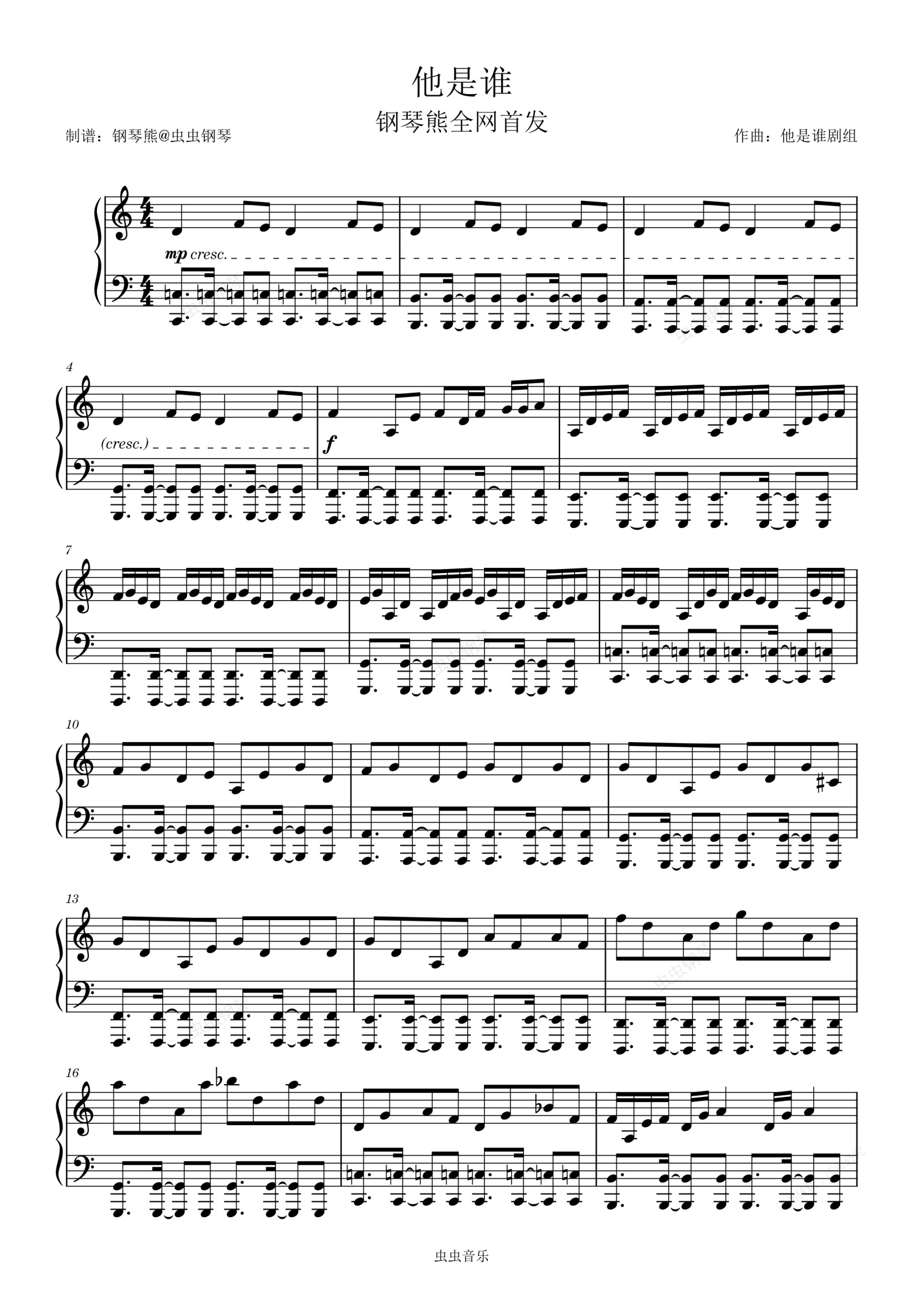 钢琴谱:C大调 他是谁 钢琴谱 钢琴熊全网首发!!!