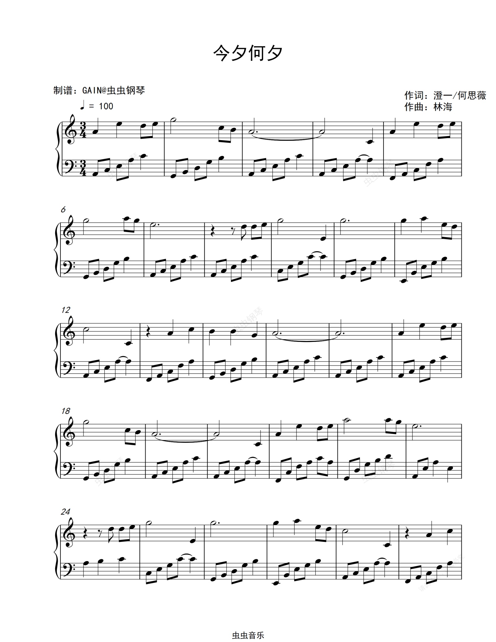 钢琴谱:今夕何夕-C调简单版-今夕何夕主题曲-徐佳莹