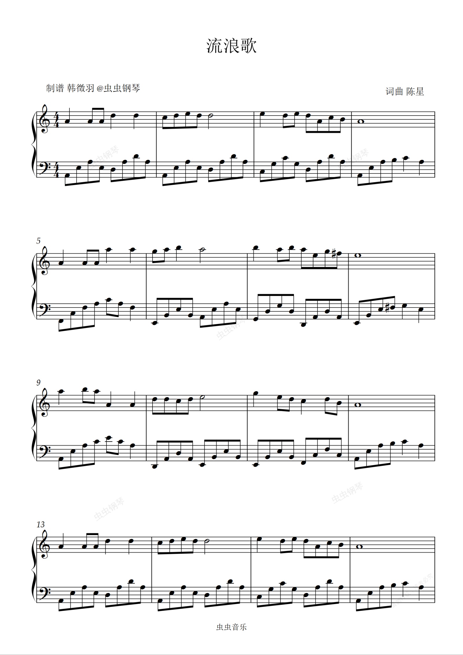 钢琴谱:流浪歌 陈星