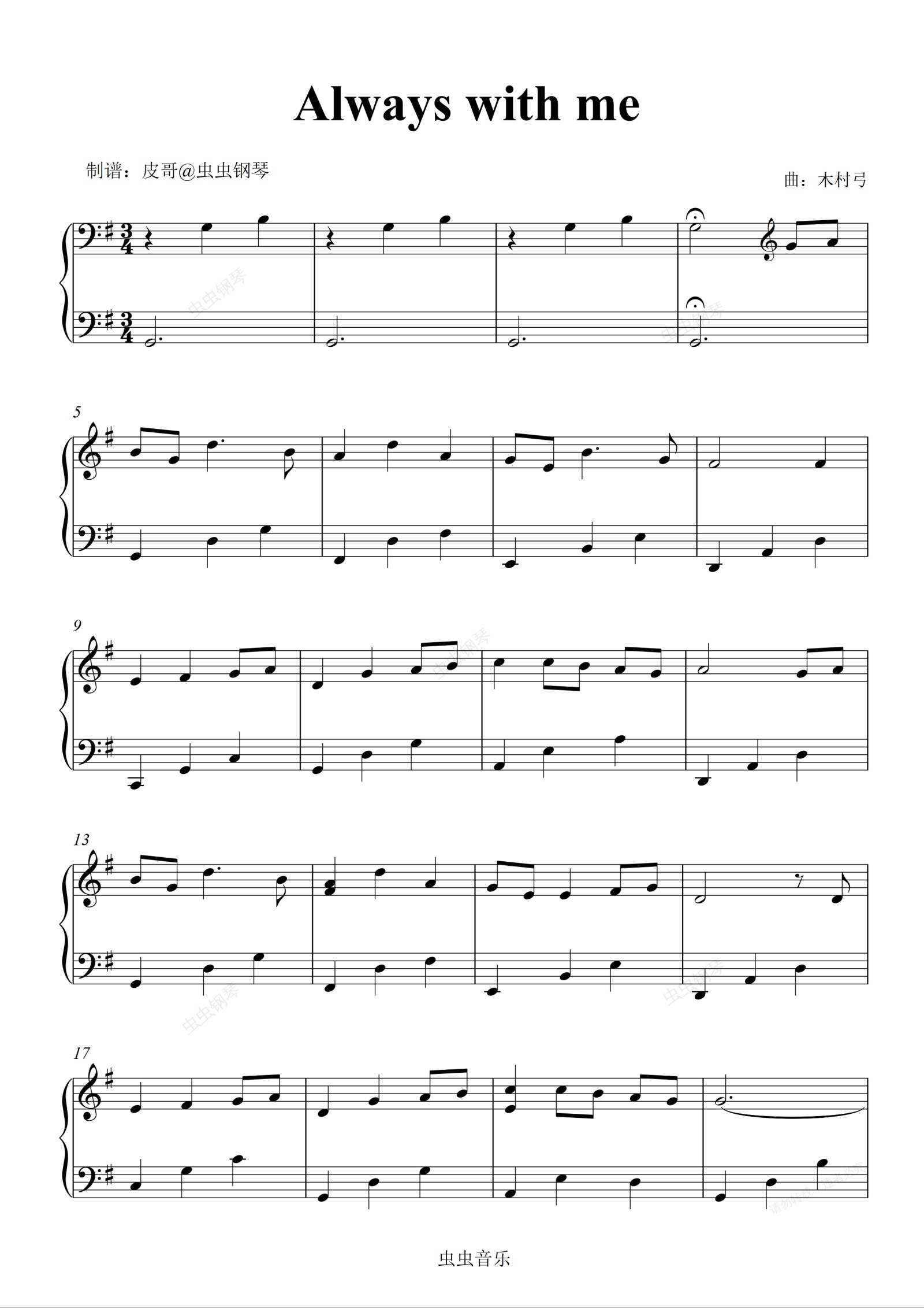 钢琴谱:always with me 零基础版本
