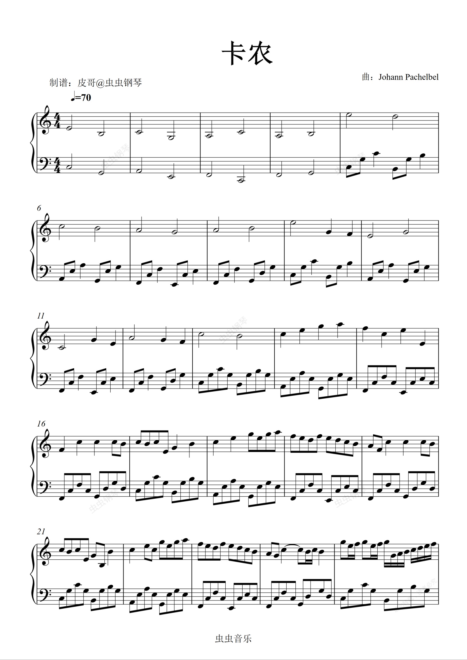 钢琴谱:卡农 零基础版本
