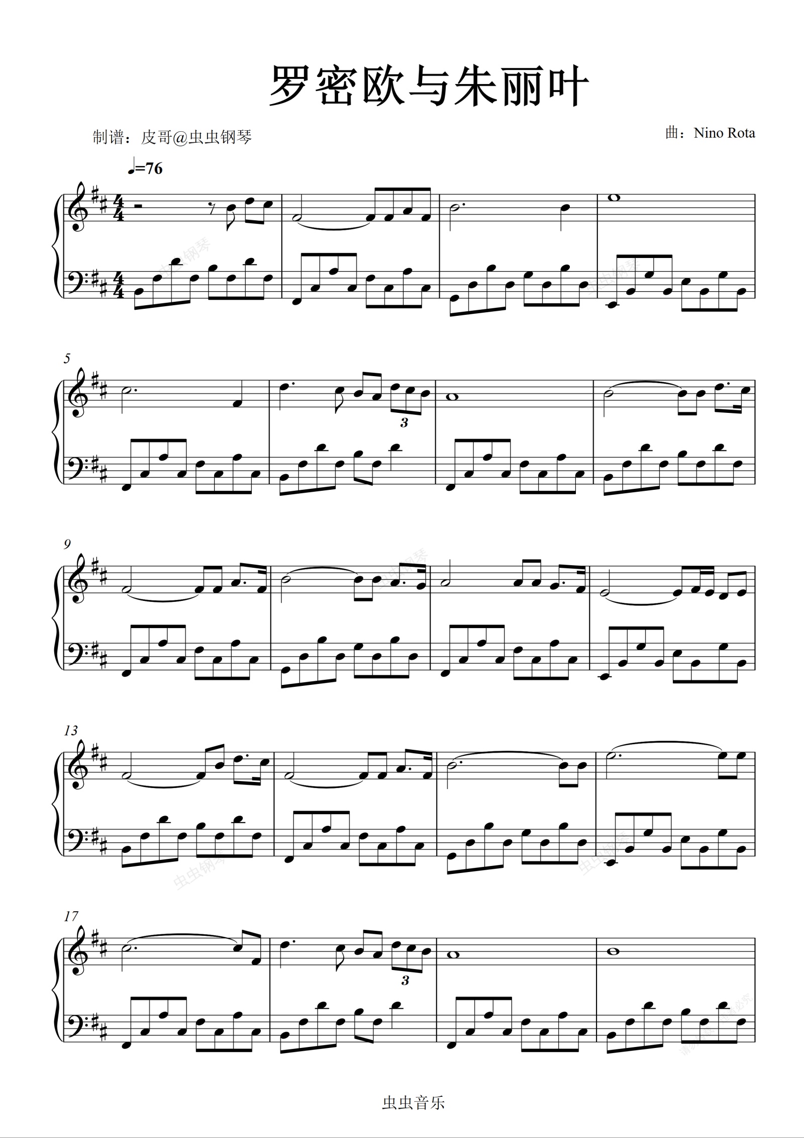 钢琴谱:罗密欧与朱丽叶 零基础版本
