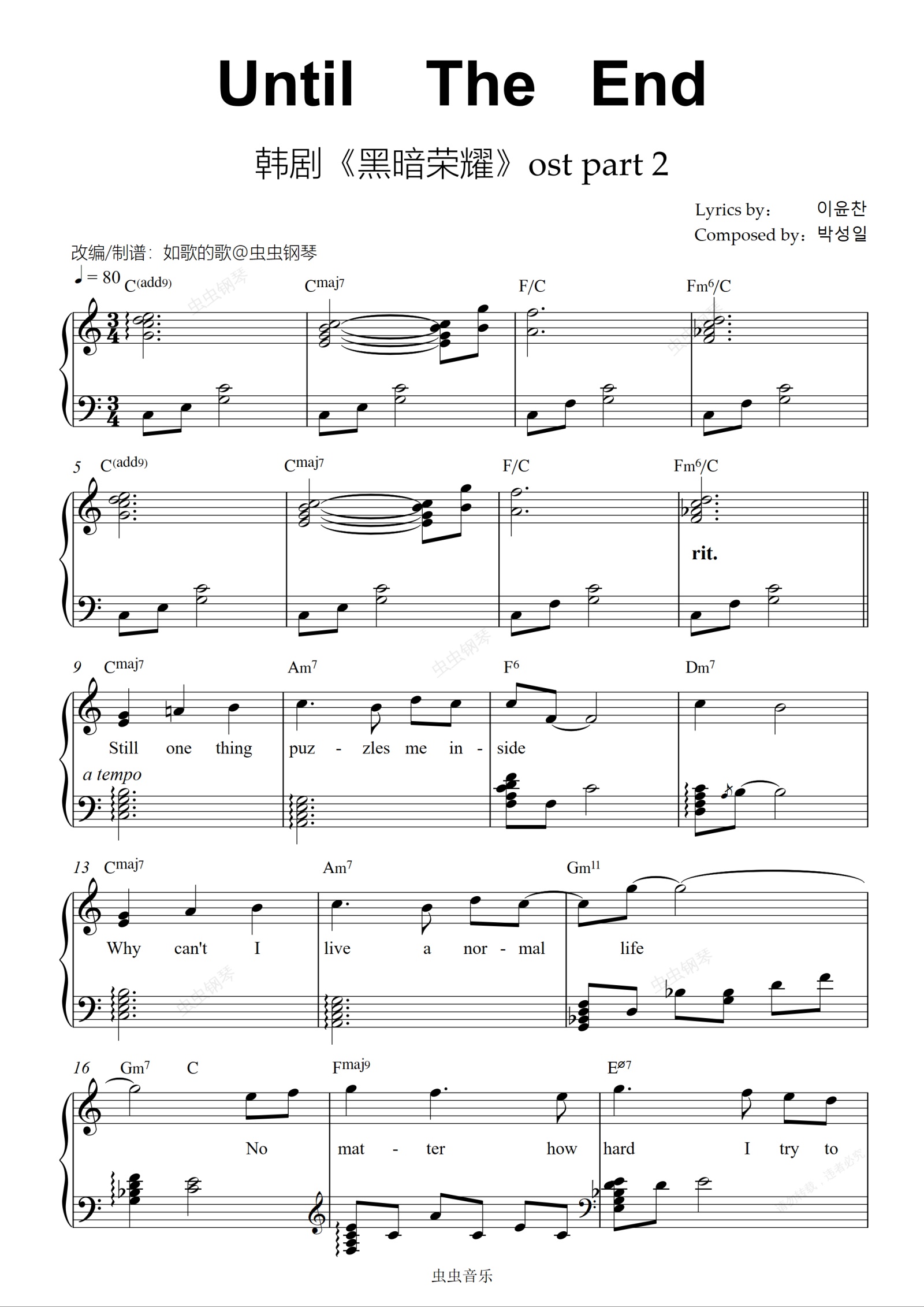 钢琴谱:Until The End-韩剧<黑暗荣耀>ost part 2附词功能可弹唱