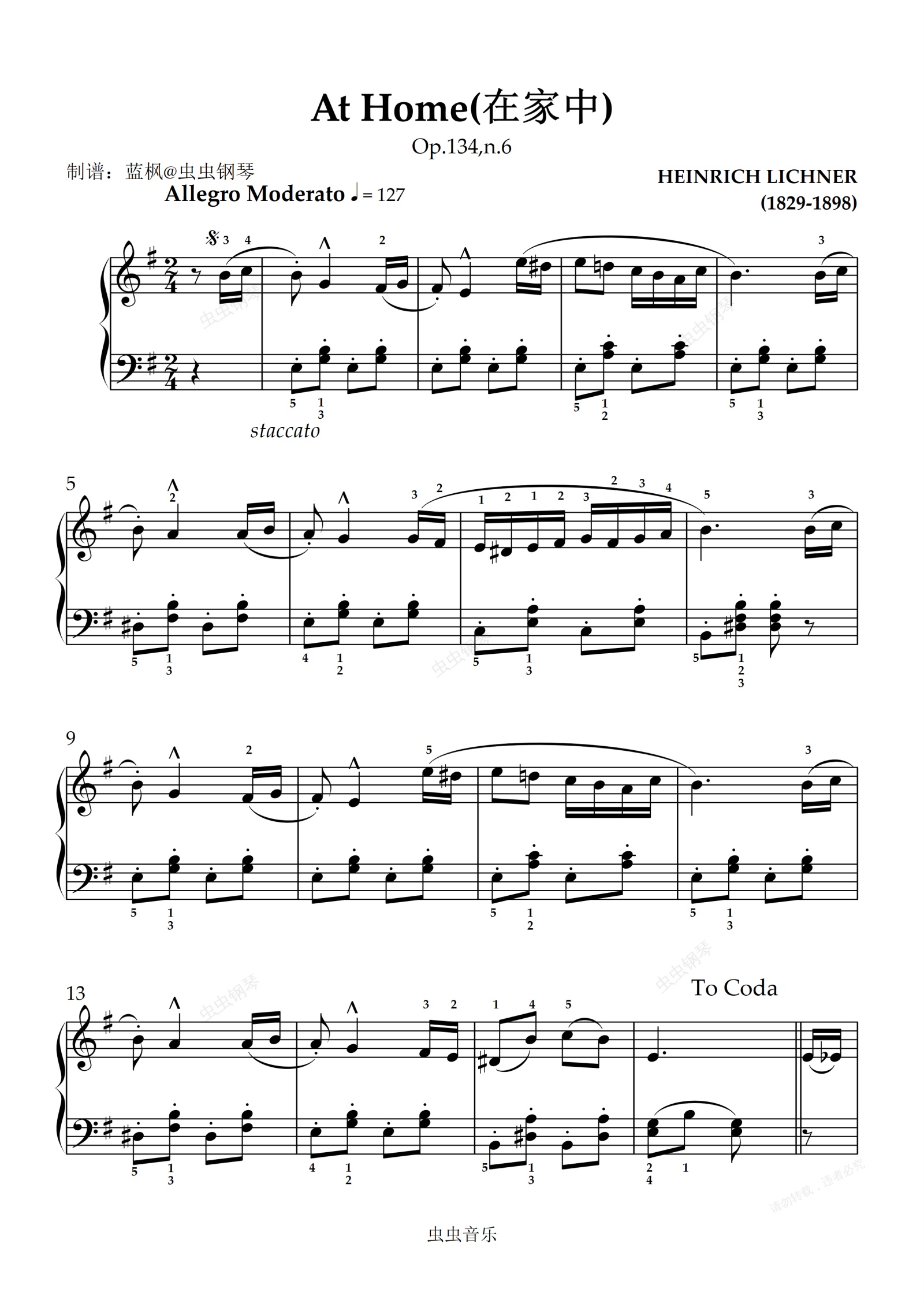 钢琴谱:(3-4级)《At Home(在家中)》Op.134,n.6——比赛表演选曲
