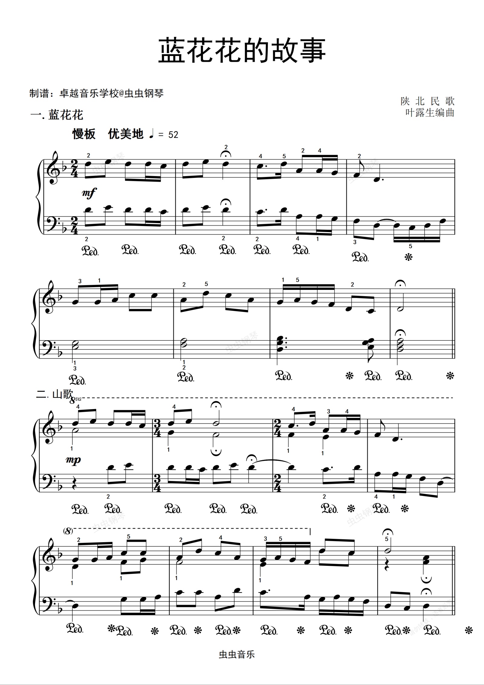 钢琴谱:兰花花故事
