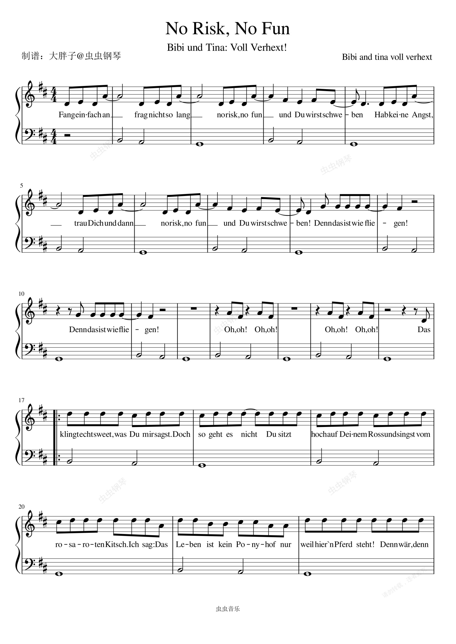钢琴谱:No Risk, no Fun - Bibi and tina voll verhext