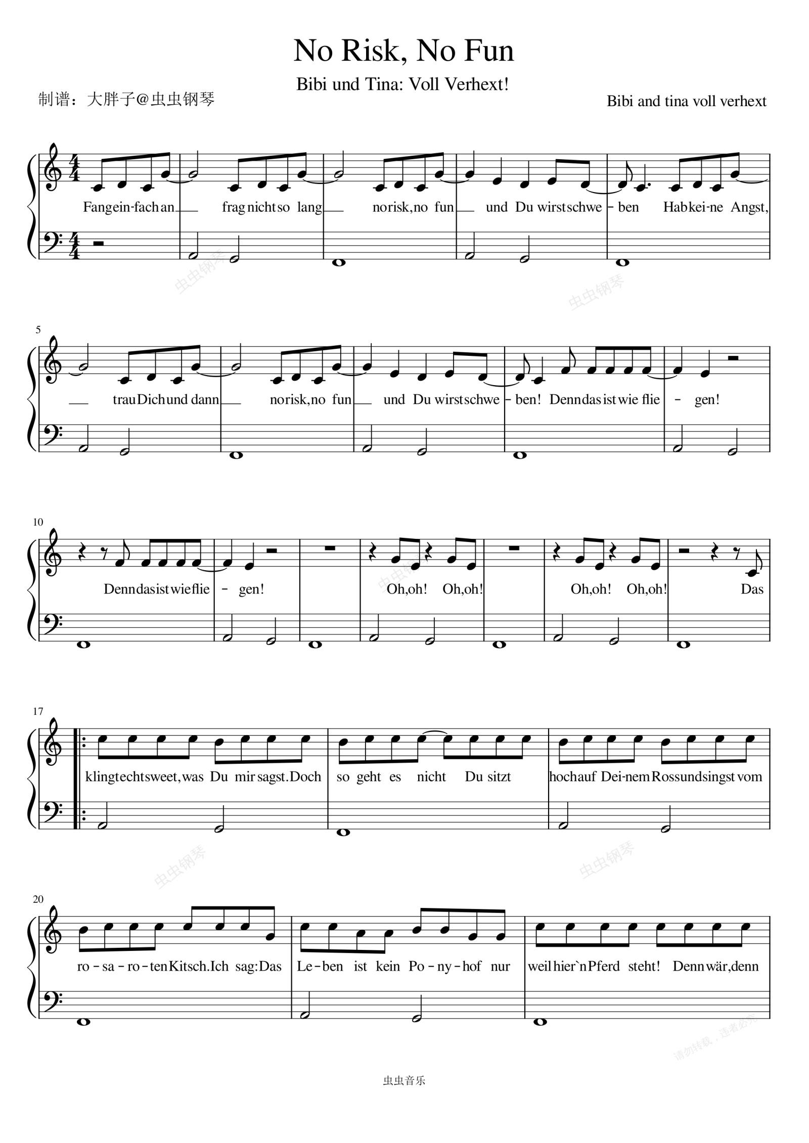 钢琴谱:No Risk, no Fun - Bibi and tina voll verhext