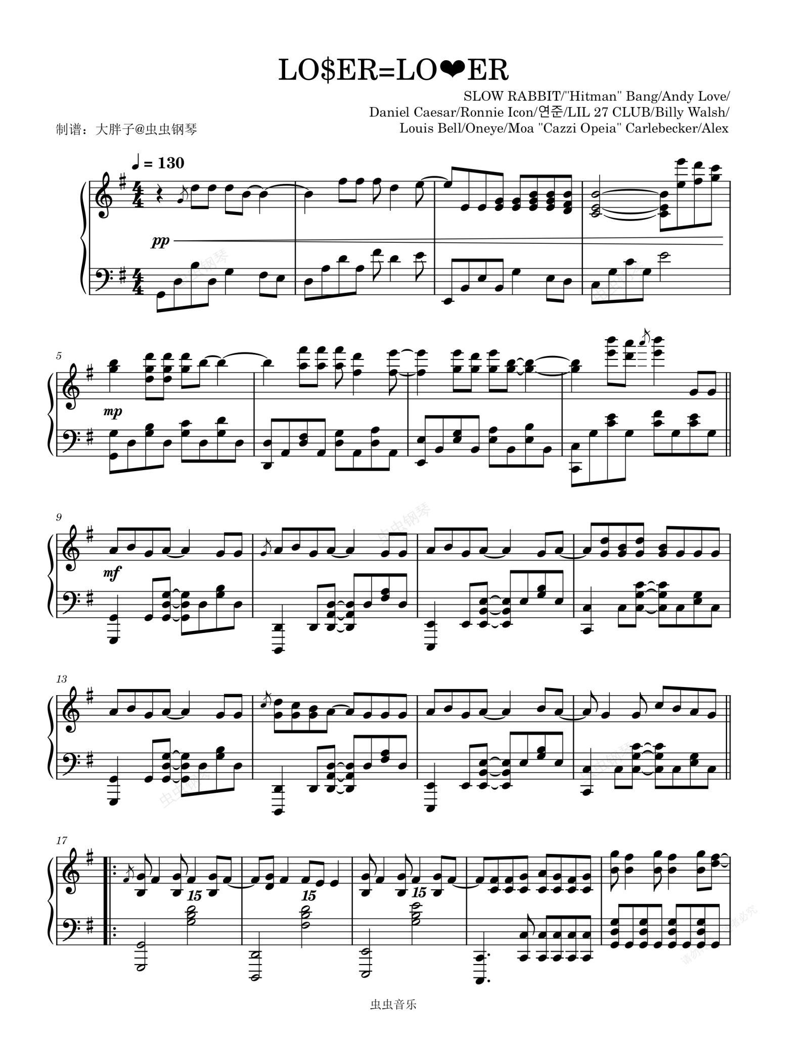 钢琴谱:LO$ER=LO♡ER - Tomorrow X Together (투모로우바이투게더)