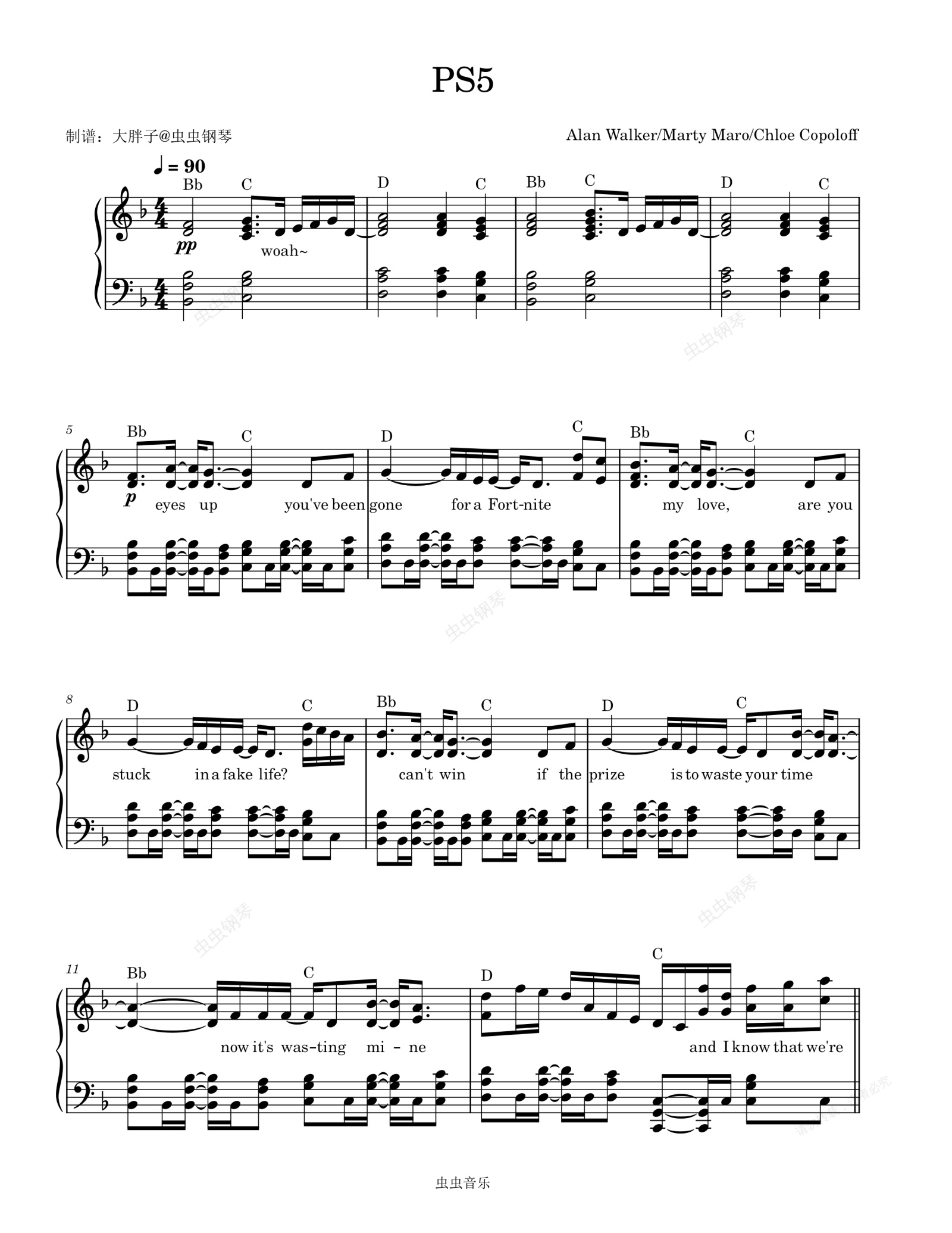 钢琴谱:PS5 - salem ilese/Tomorrow X Together (투모로우바이투게더)/Alan Walker (艾兰·沃克)