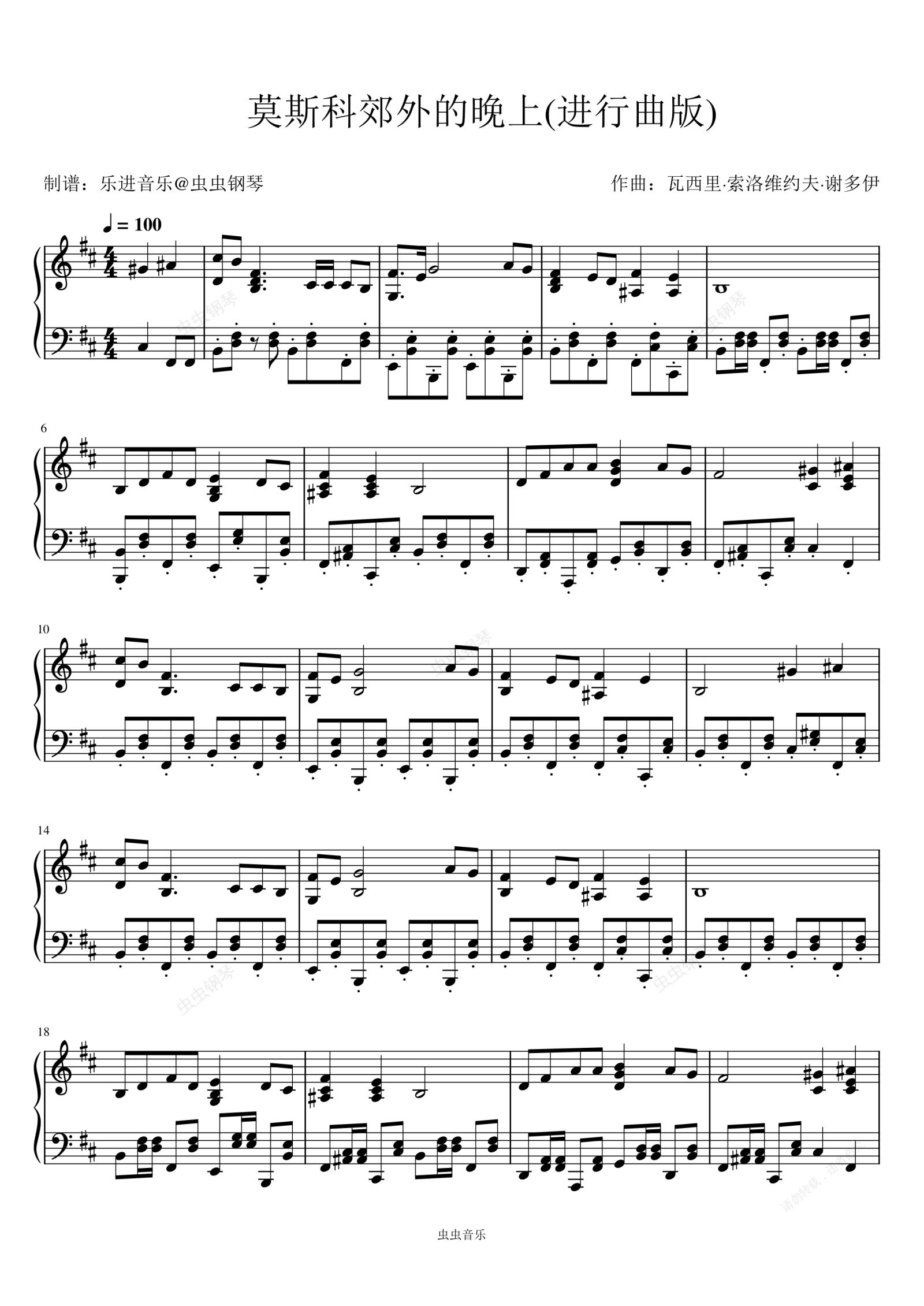 钢琴谱:《莫斯科郊外的晚上》进行曲伴奏版