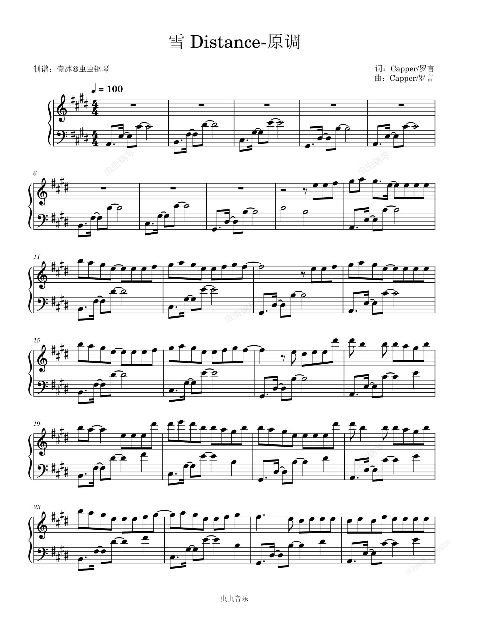 钢琴谱:雪 Distance//Capper/罗言RollFlash-原调