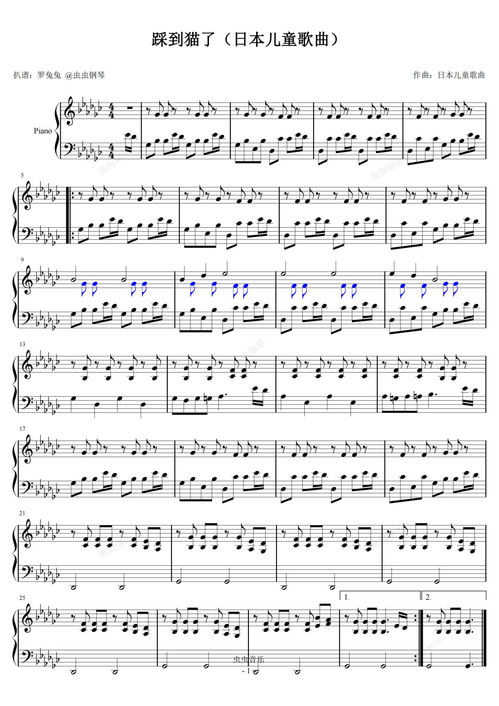 钢琴谱:踩到猫了(日本儿童歌曲)