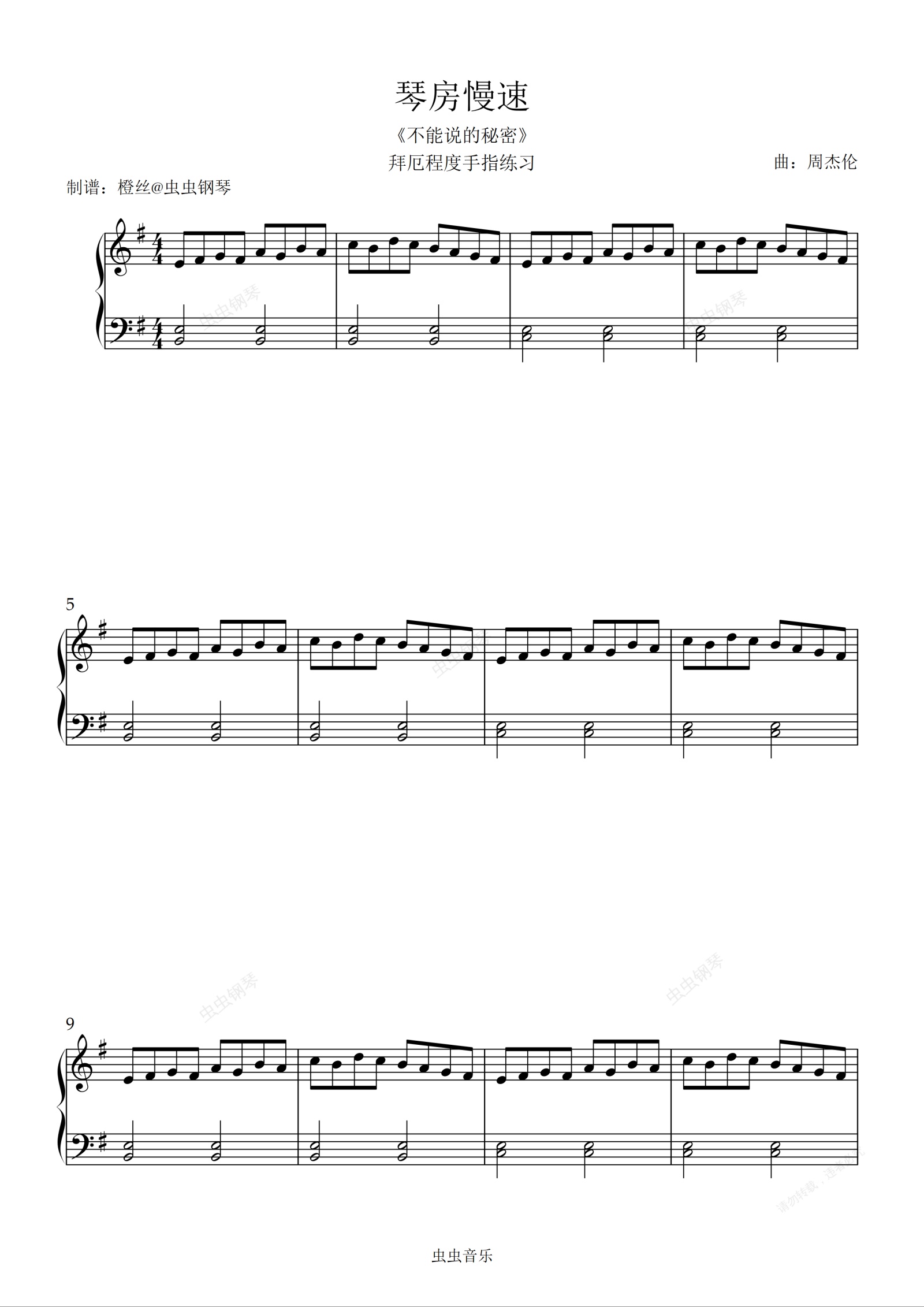 钢琴谱:琴房(拜厄程度手指练习)