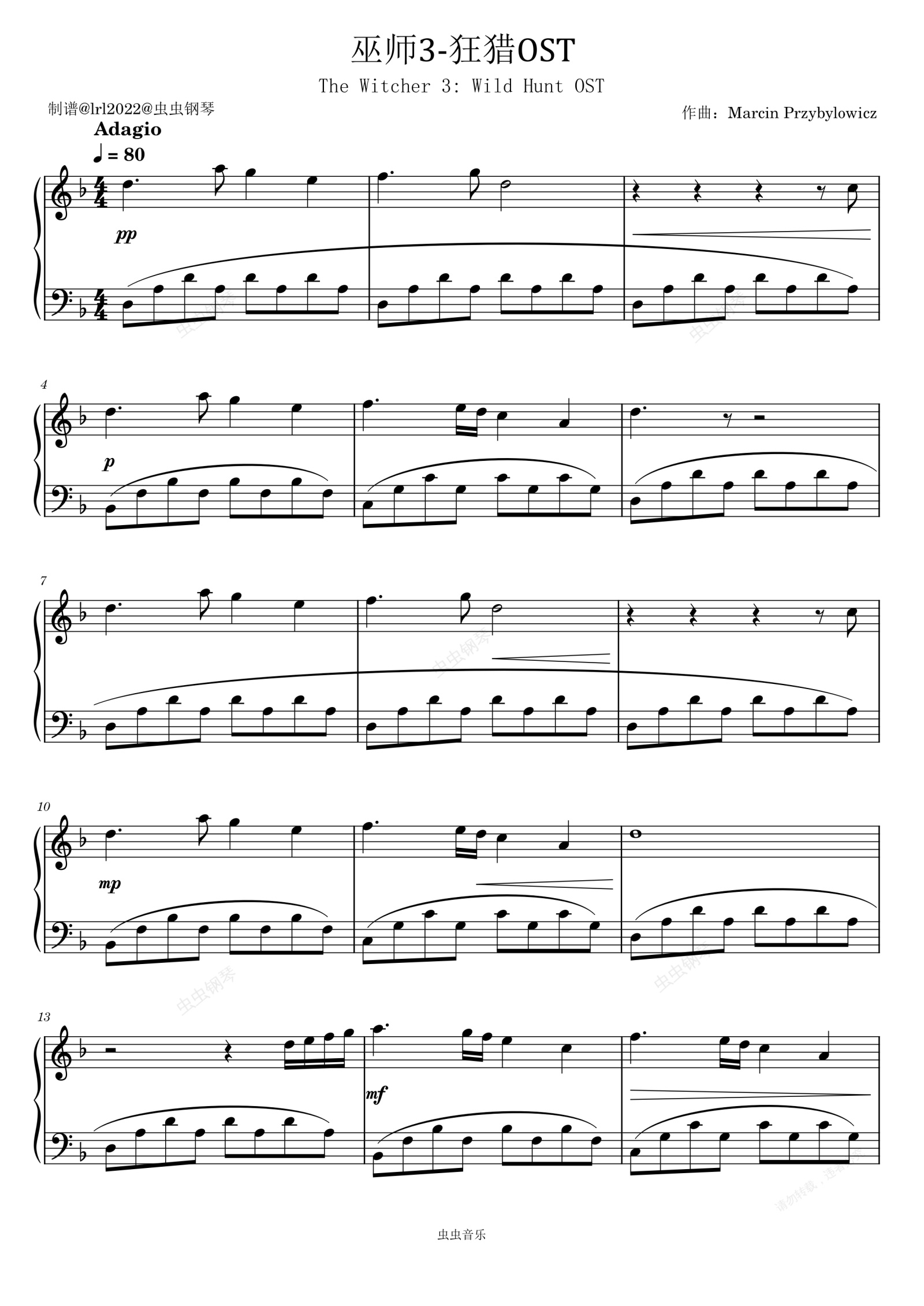 钢琴谱:巫师3-狂猎OST-The Witcher 3: Wild Hunt