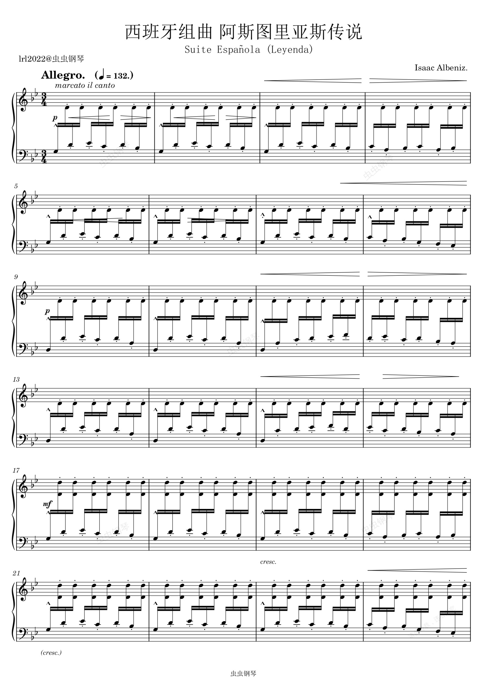 钢琴谱:西班牙组曲-阿斯图里亚斯传说 Albeniz - Suite Española - (Op.47 No. 5 Asturias) (Leyenda)