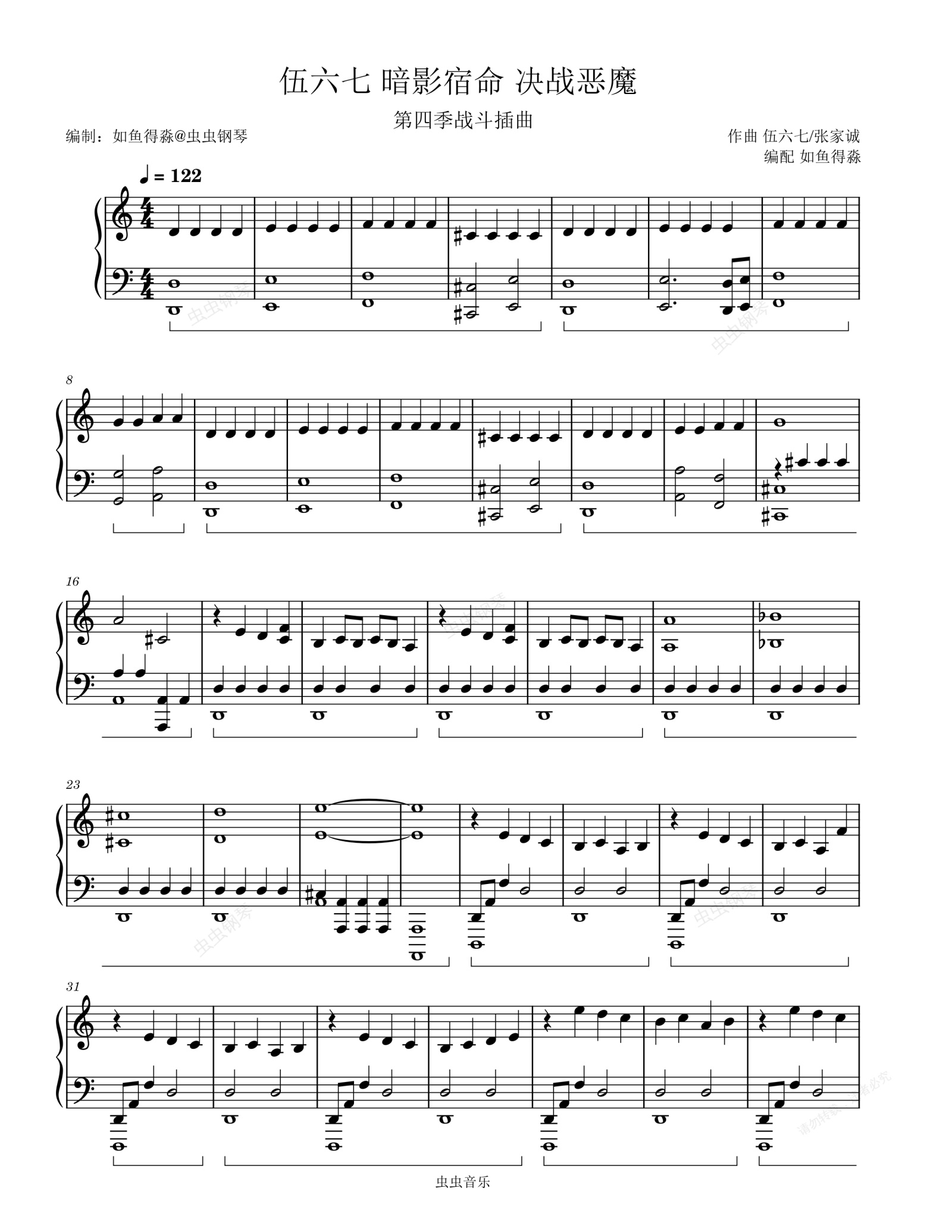 钢琴谱:伍六七 暗影宿命《决战恶魔》战斗插曲 原调