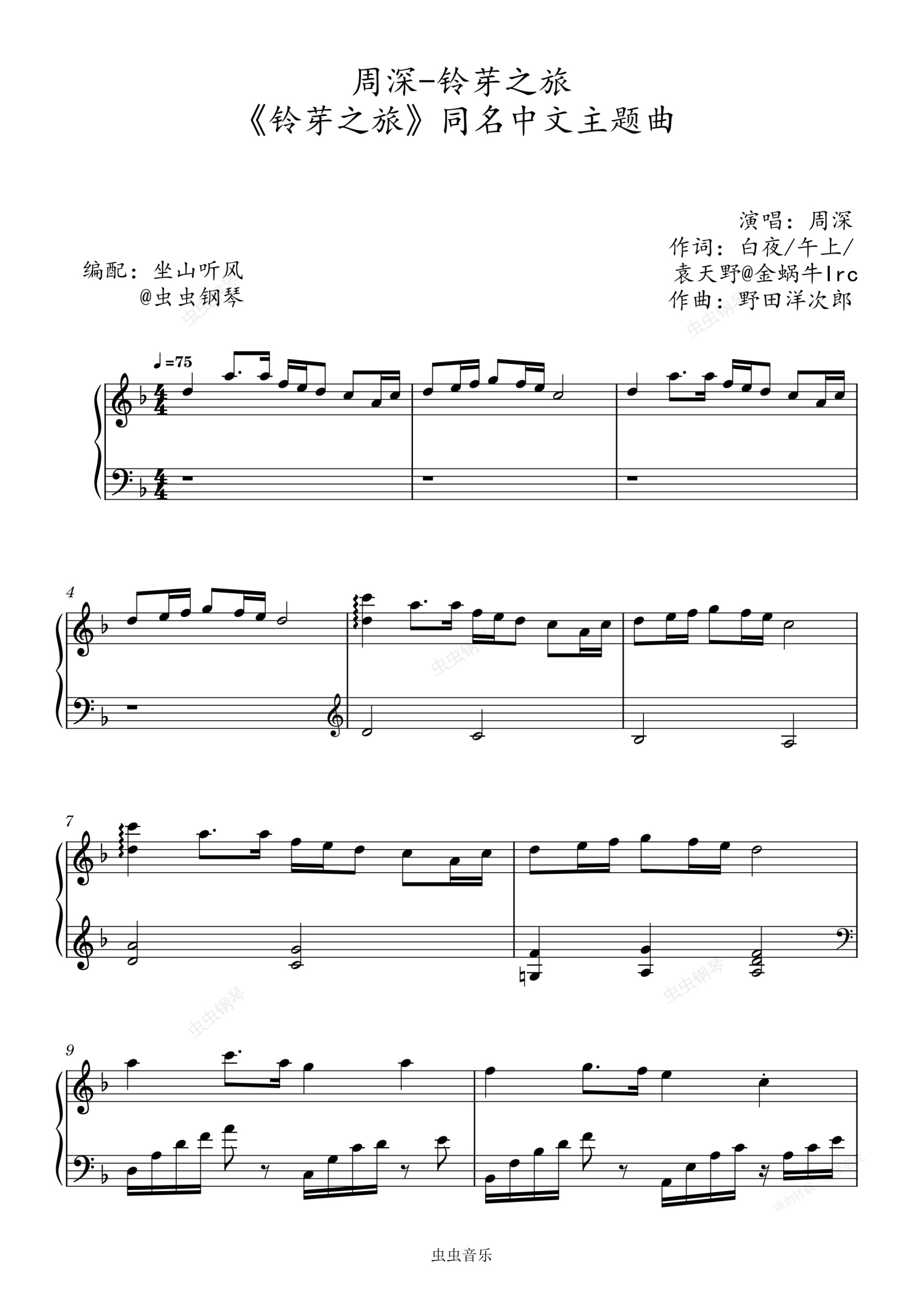 钢琴谱:周深-铃芽之旅 《铃芽之旅》同名中文主题曲