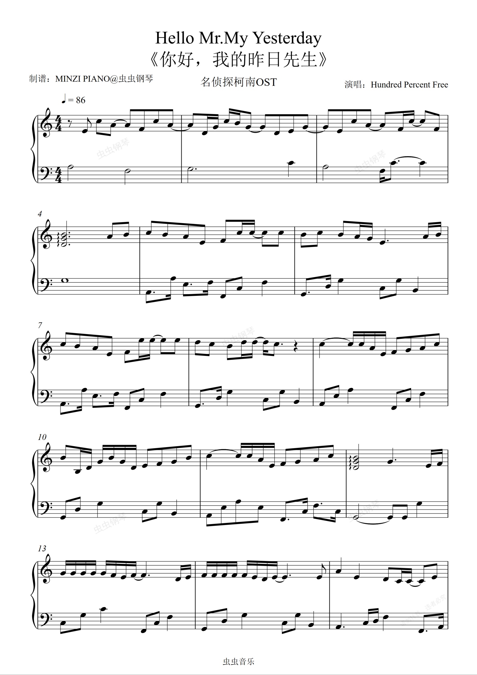 钢琴谱:名侦探柯南-Hello Mr.my yesterday