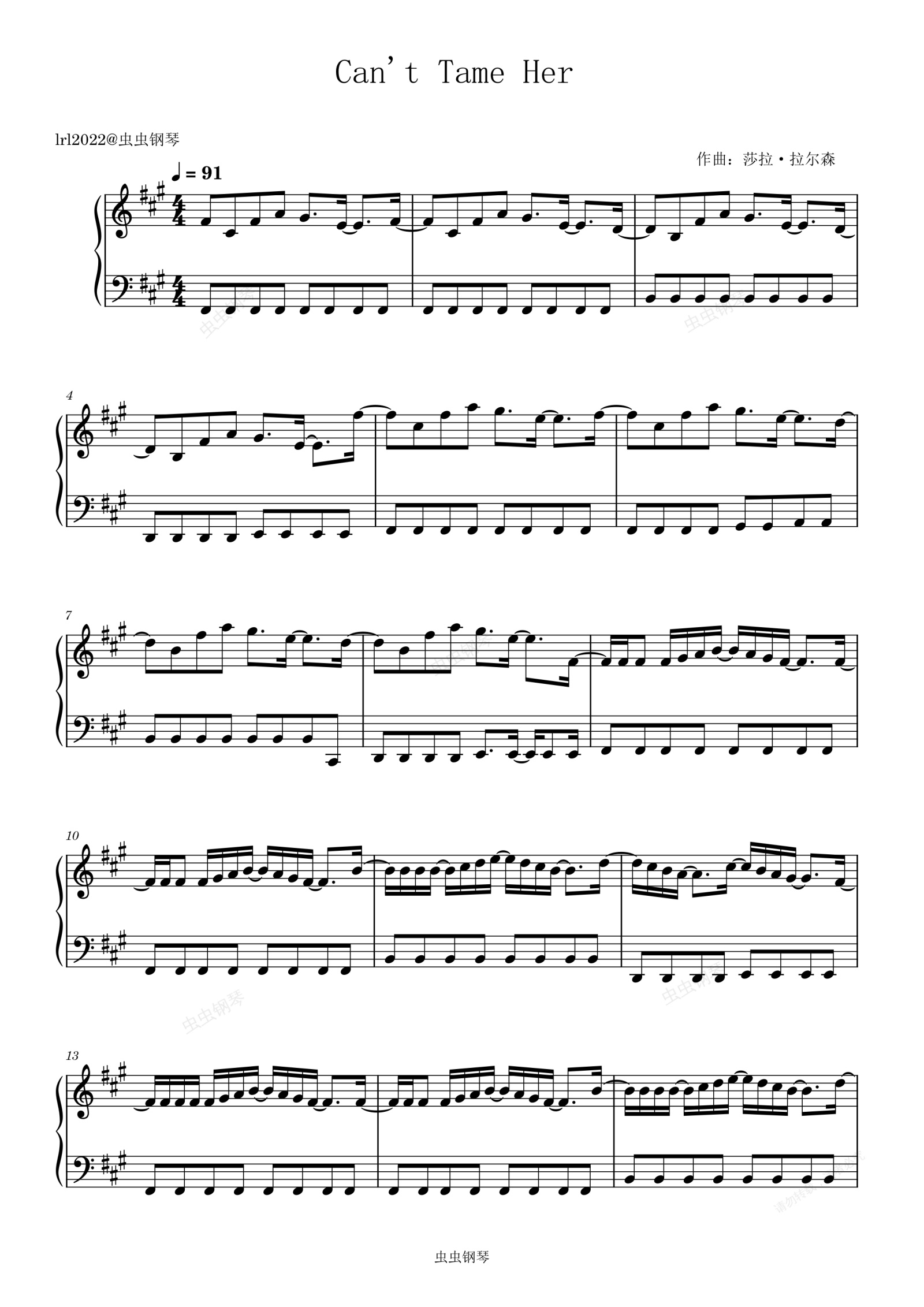 钢琴谱:Cant Tame Her - 瑞典歌曲 - 独奏版-Zara Larsson