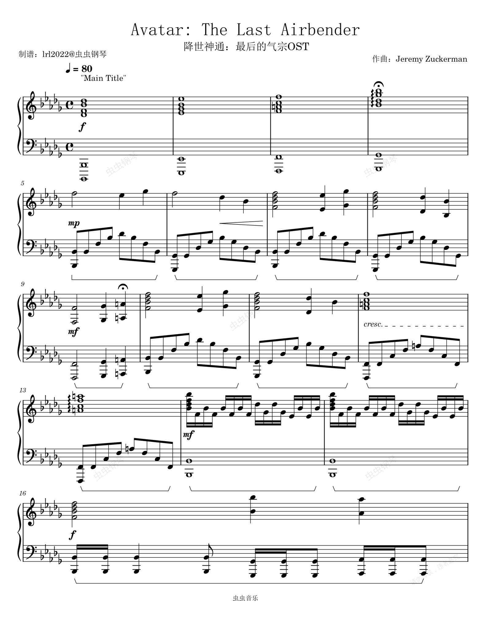 钢琴谱:Avatar-The Last Airbender-降世神通:最后的气宗OST