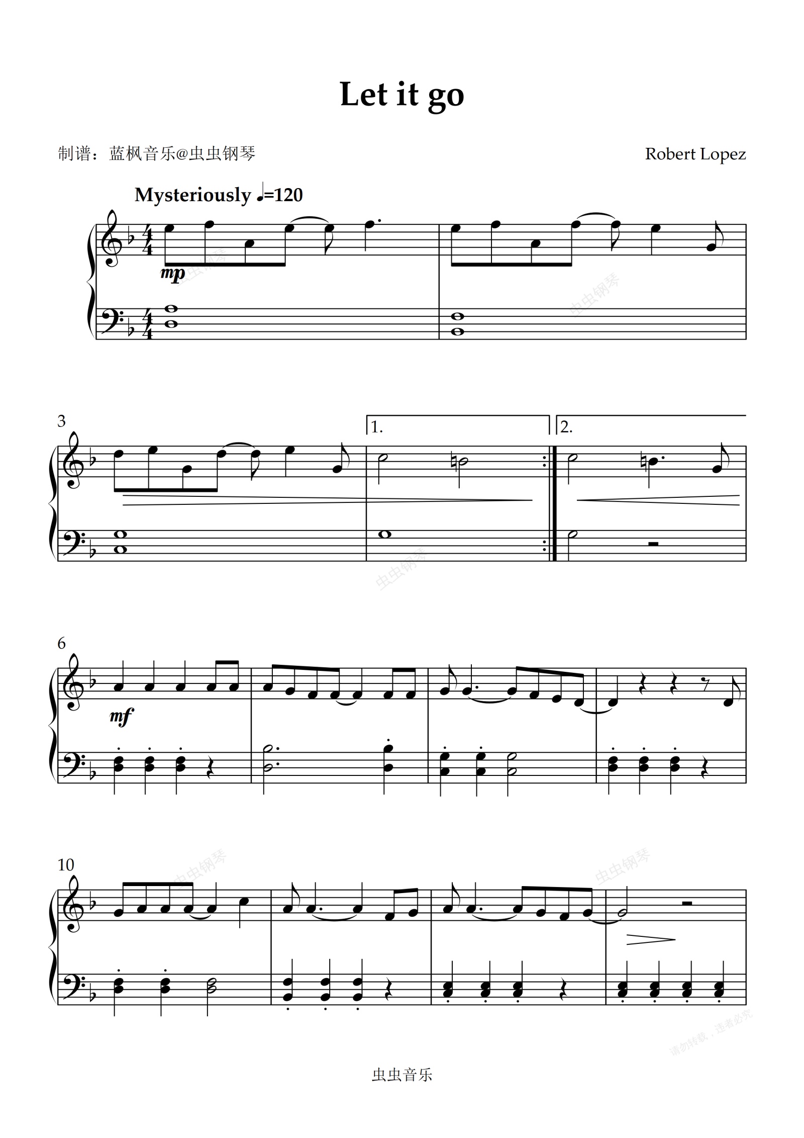 钢琴谱:Let it go