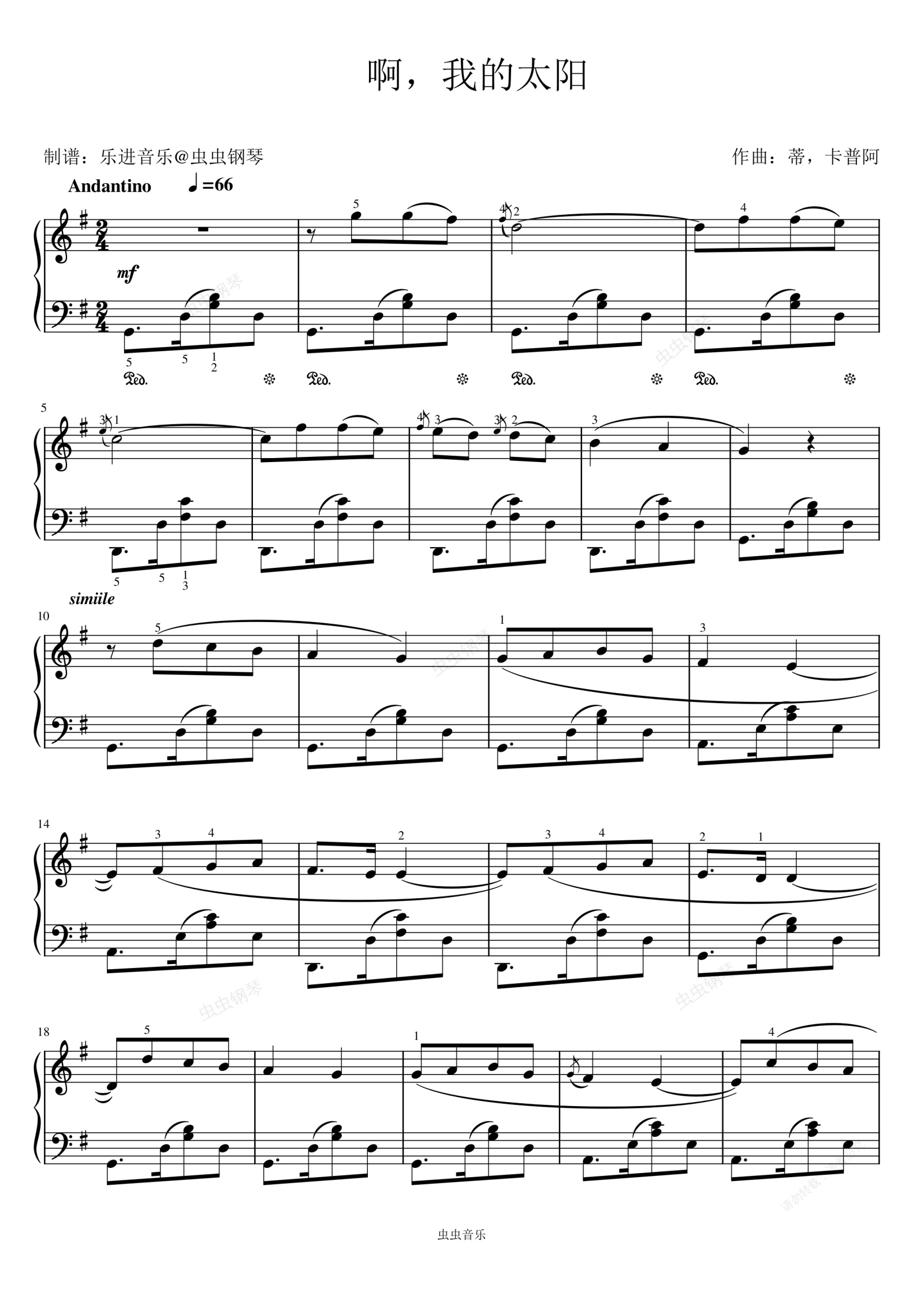 钢琴谱:《啊,我的太阳》钢琴基础教程教材版