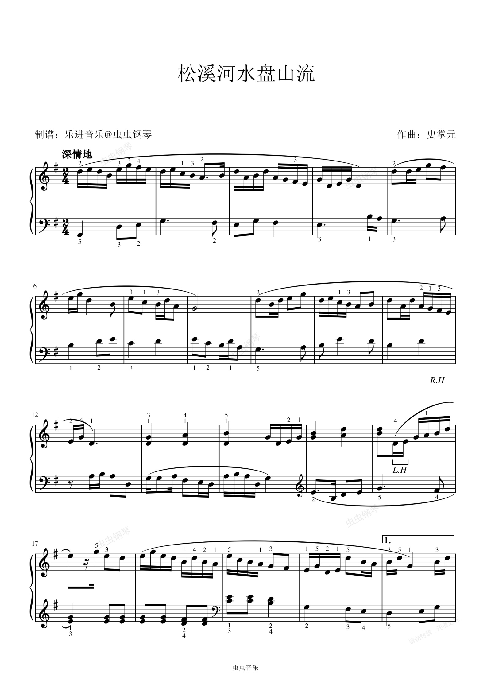 钢琴谱:《松溪河水盘山流》钢琴基础教程教材版