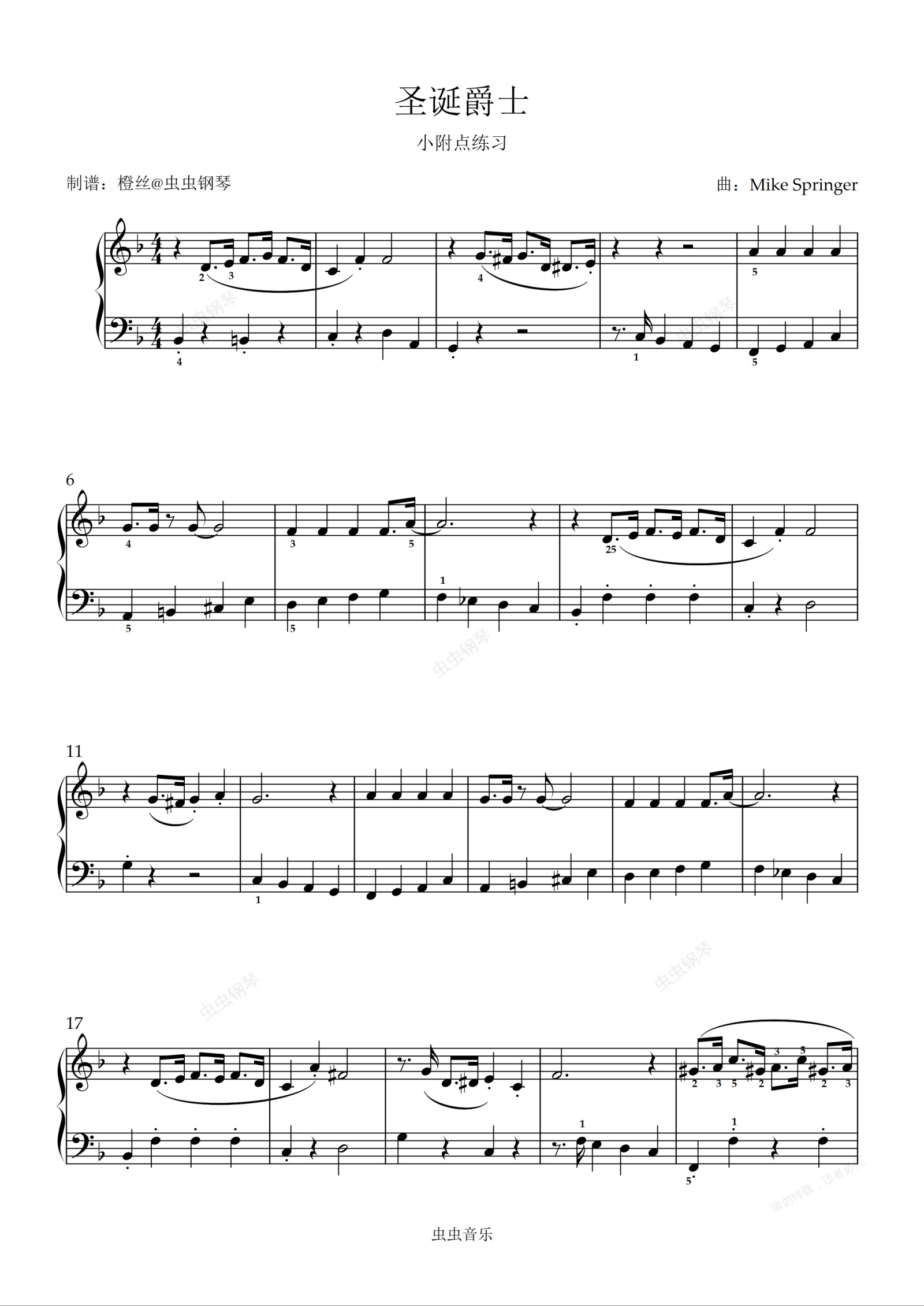 钢琴谱:圣诞爵士(附点八分音符练习)