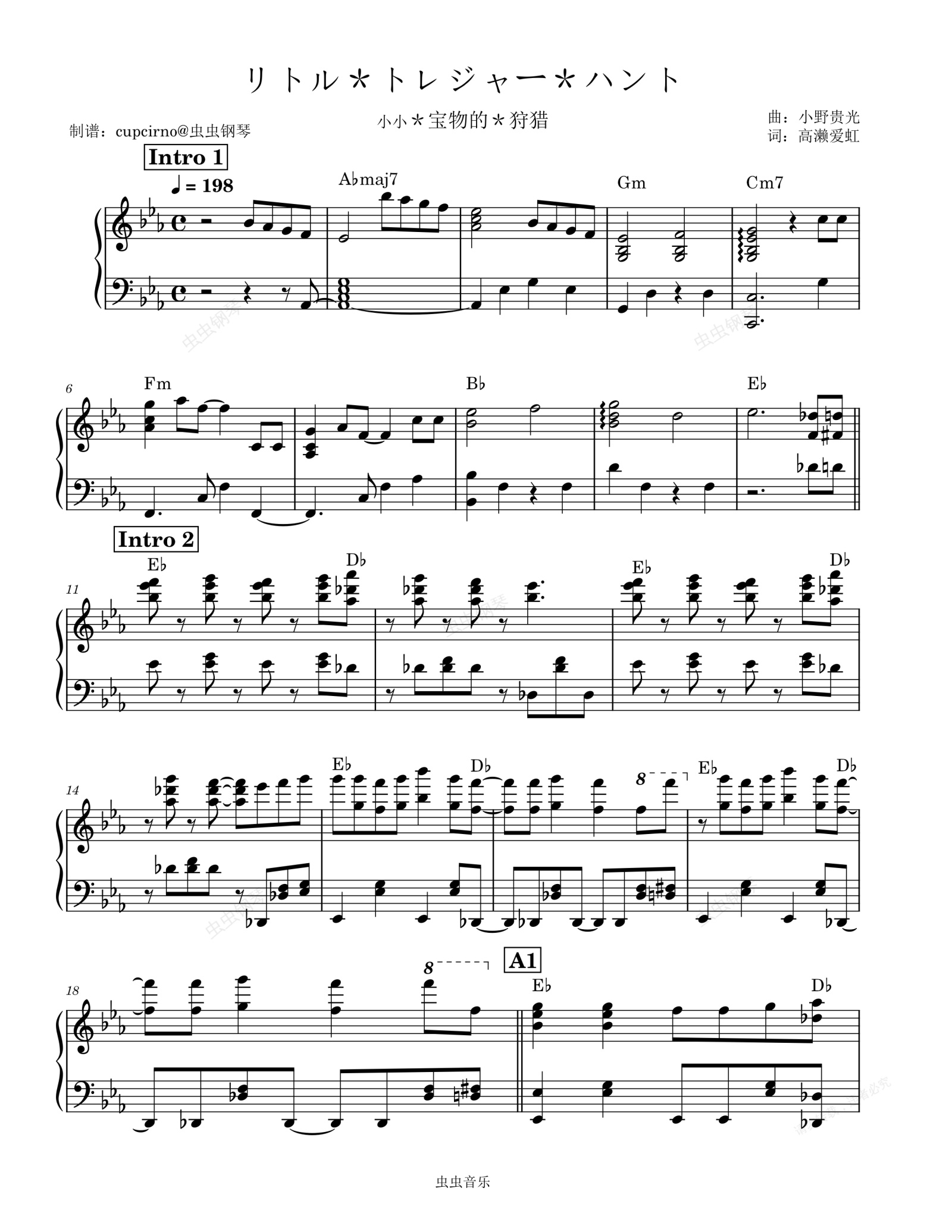 钢琴谱:[点兔]リトル*トレジャー*ハント-麻耶、惠