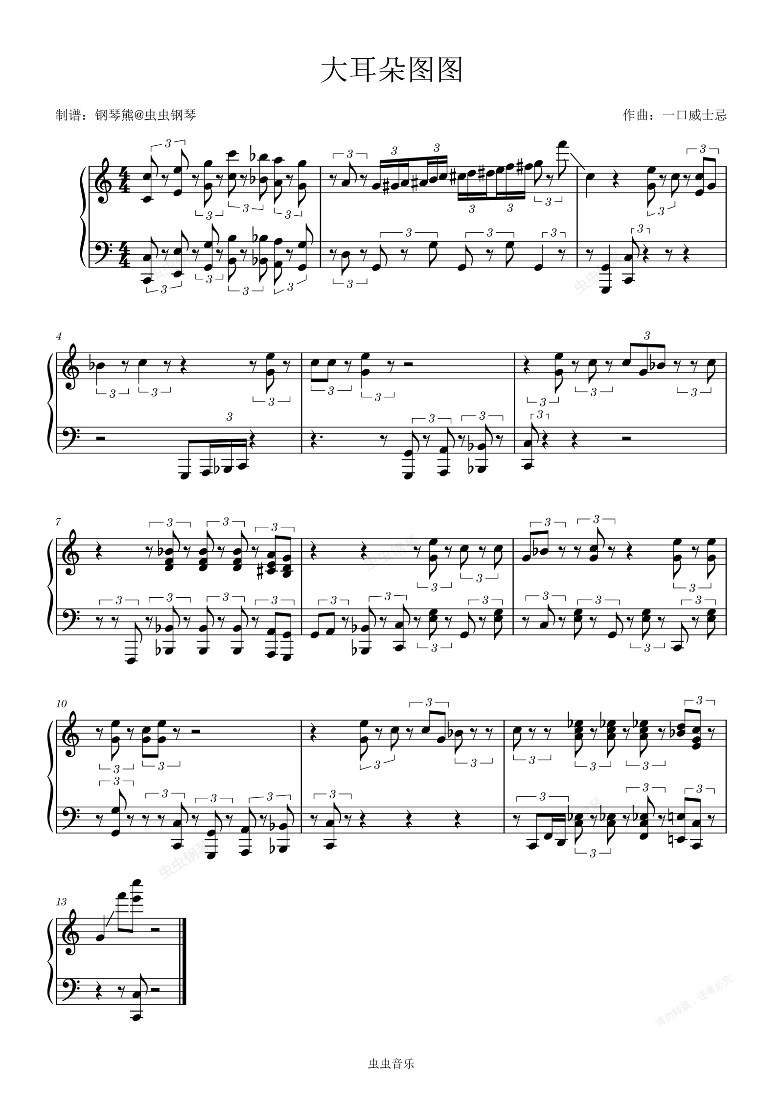钢琴谱:大耳朵图图 快乐小孩~爵士版~