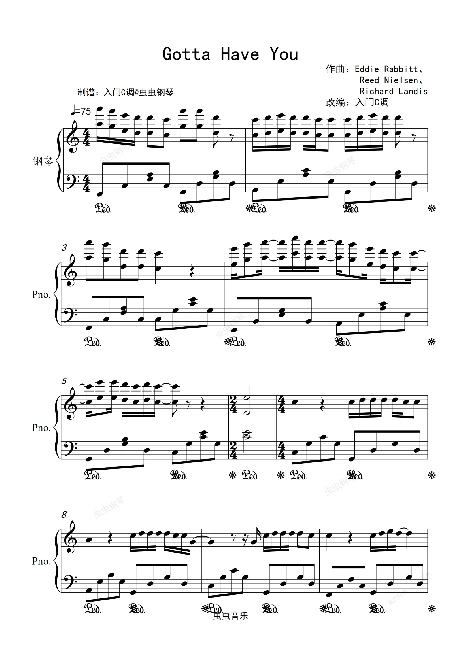 钢琴谱:经典英文歌《Gotta Have You》入门C调简单版