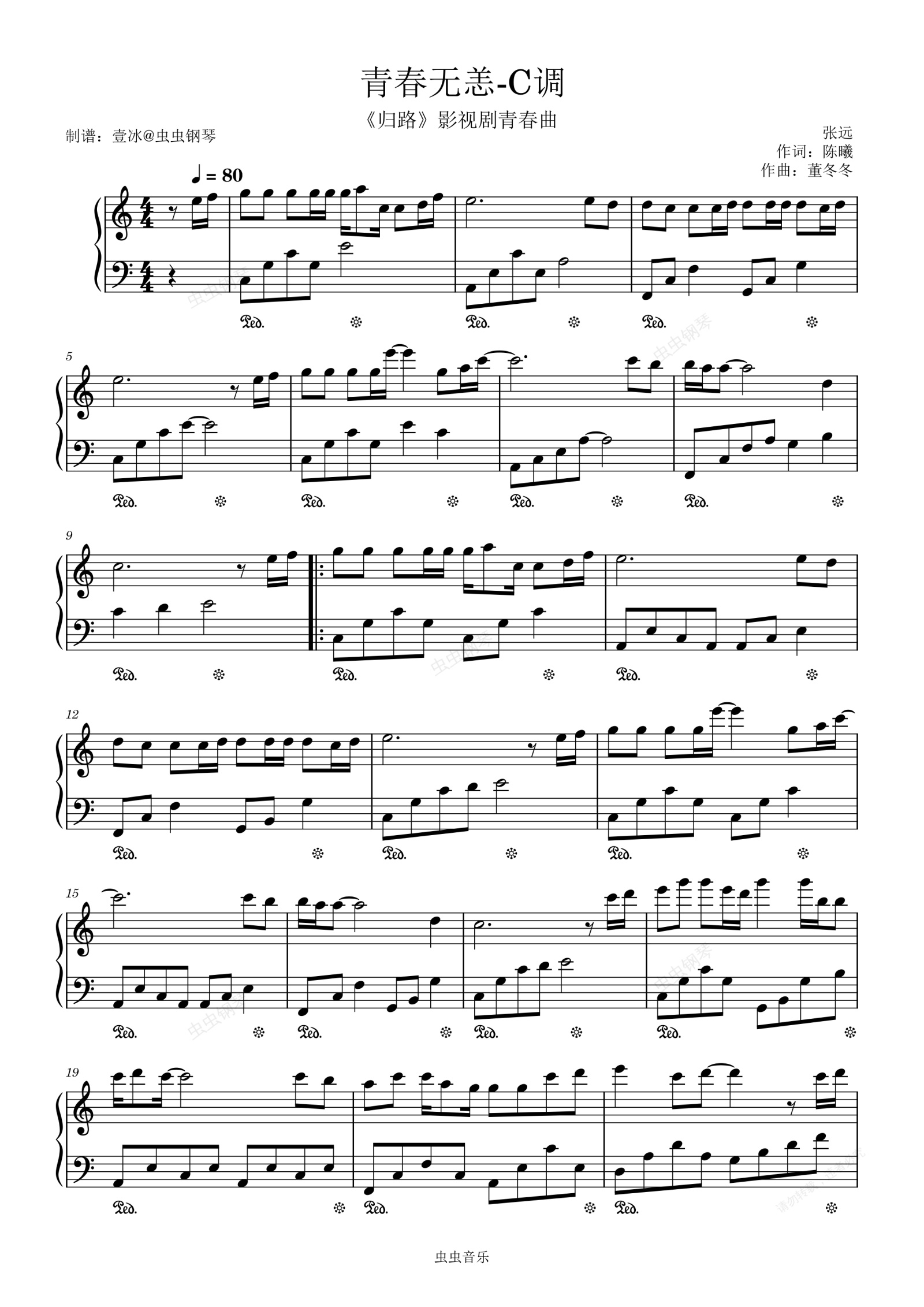 钢琴谱:青春无恙//《归路》影视剧青春曲-C调