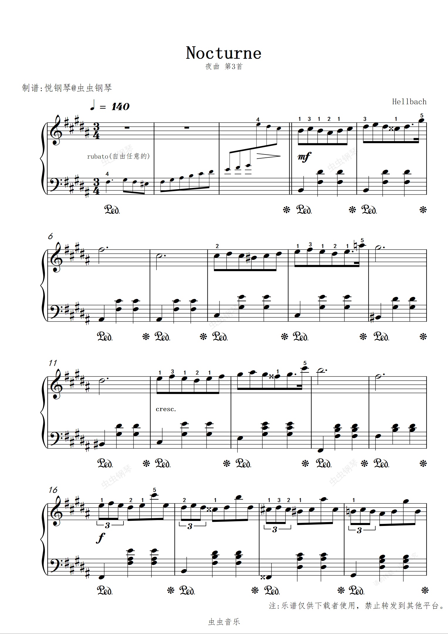 钢琴谱:夜曲 第三首 赫尔巴赫【浪漫-治愈-超好听】
