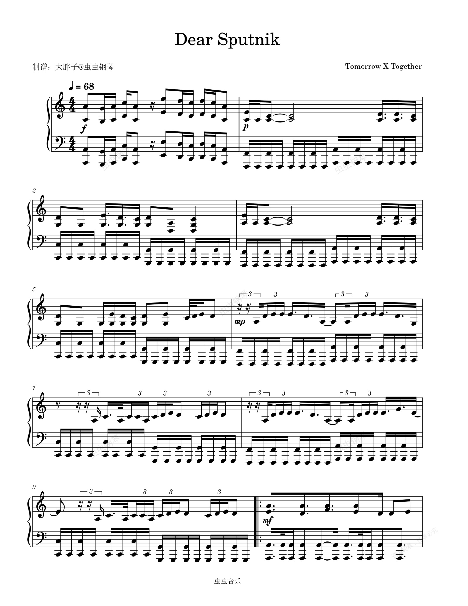 钢琴谱:디어 스푸트니크 (Dear Sputnik) - Tomorrow X Together (투모로우바이투게더)