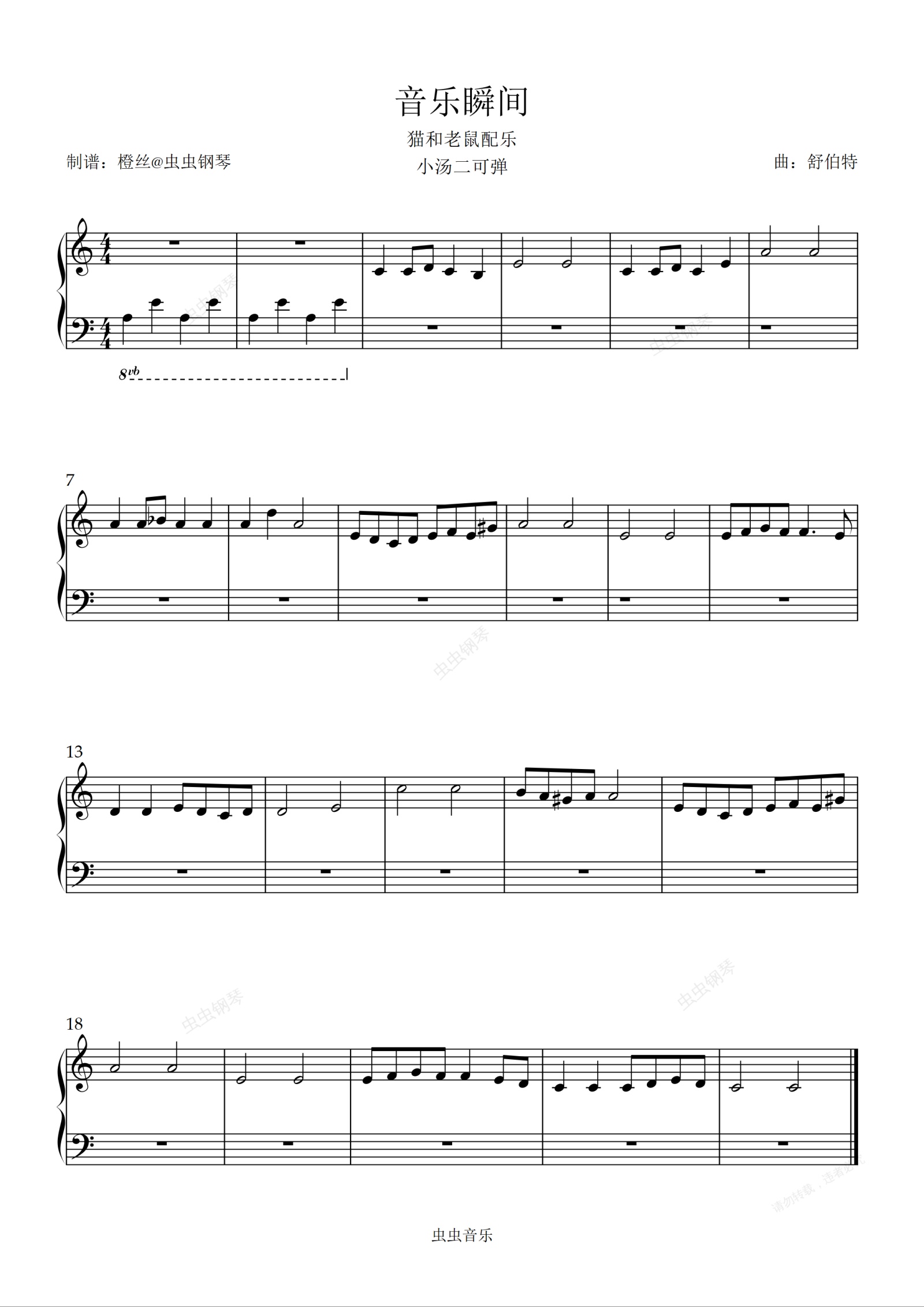 钢琴谱:音乐瞬间(猫和老鼠配乐小汤二可弹)