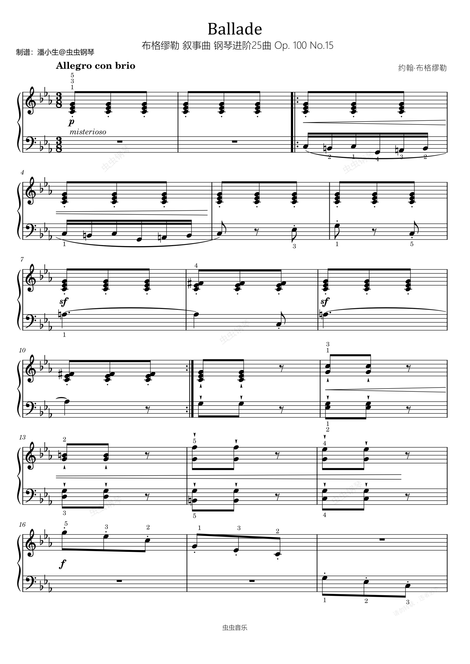 钢琴谱:Ballade 布格缪勒 叙事曲 原版带指法 Burgmuller Op.100 No.15