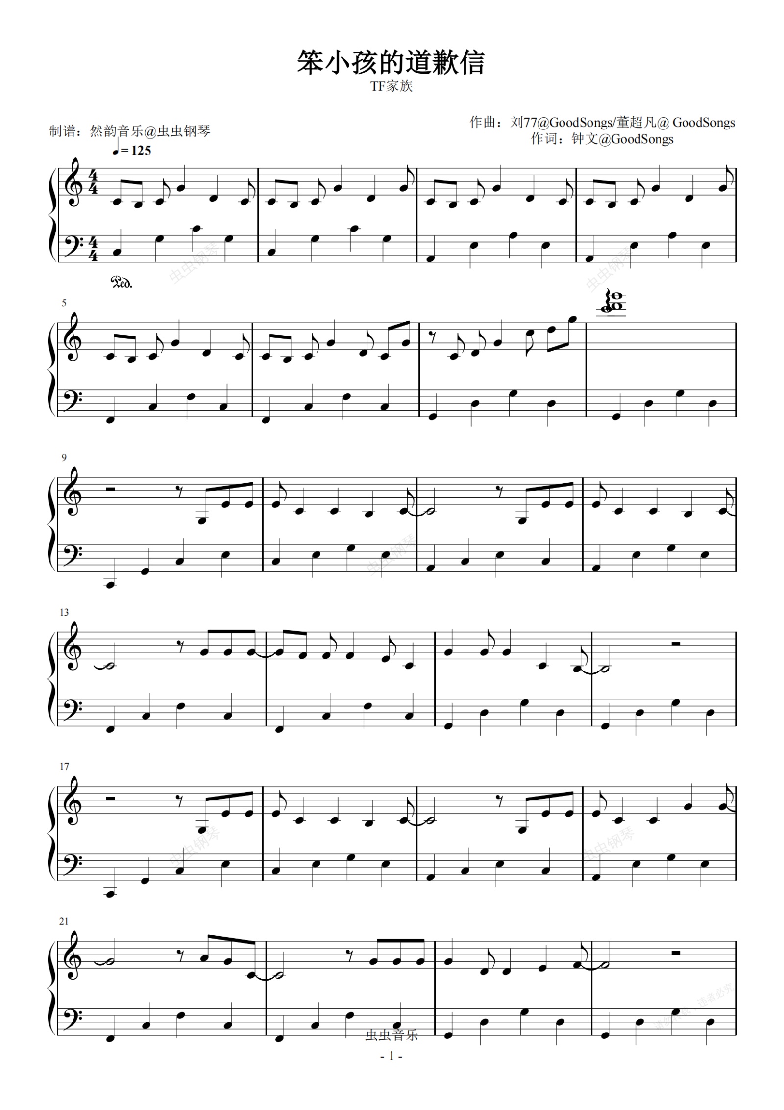 钢琴谱:【C调优惠】笨小孩的道歉信-TF家族 简单易学版