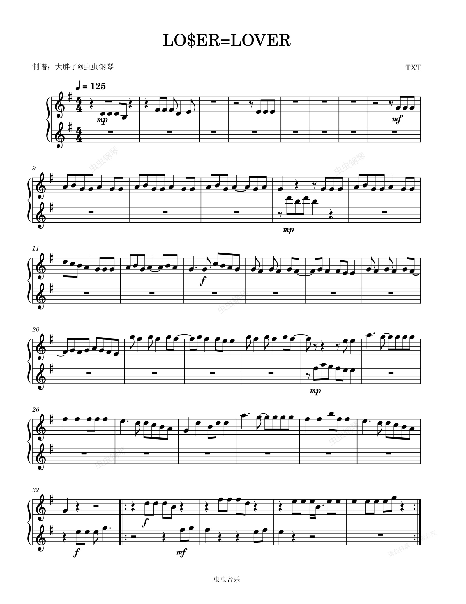 钢琴谱:LO$ER=LO♡ER - Tomorrow X Together (투모로우바이투게더)
