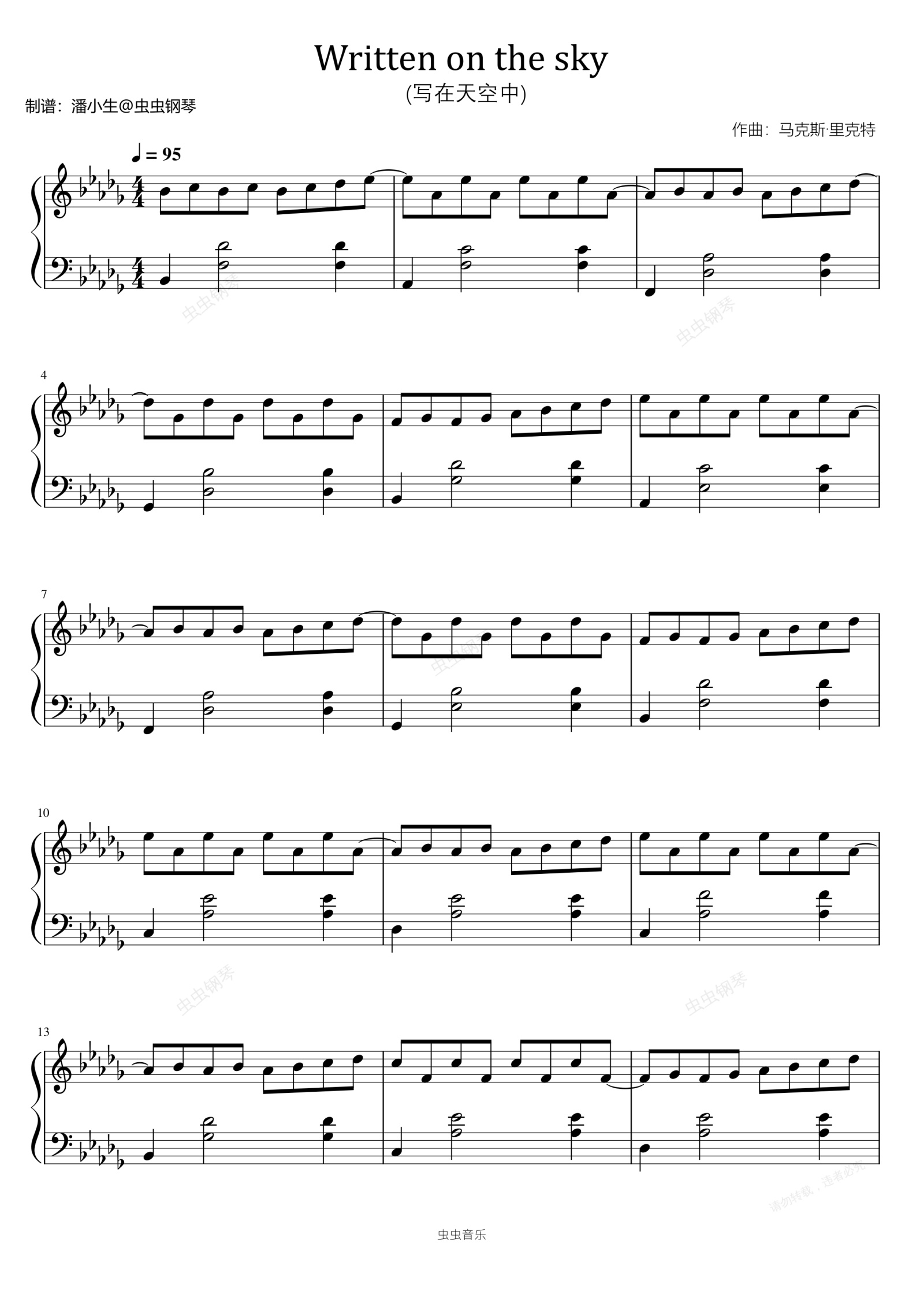 钢琴谱:Written On The Sky (写在天空中)  经典钢琴曲 独奏谱