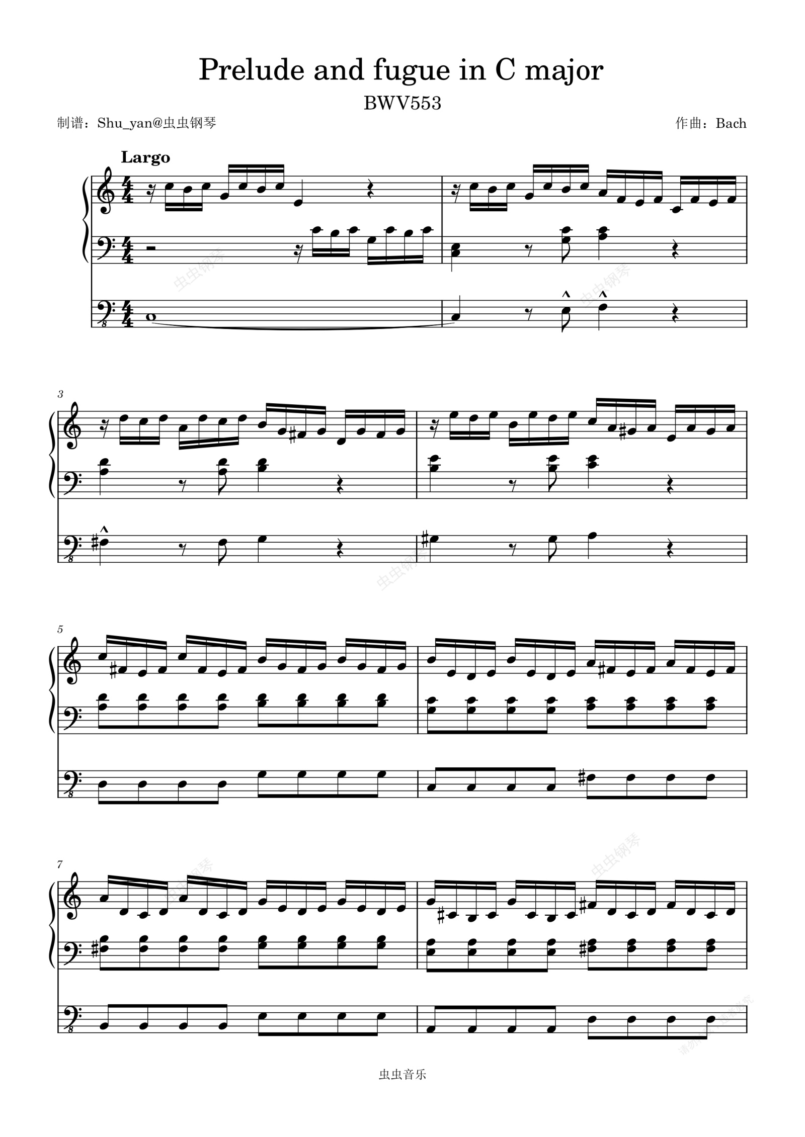 钢琴谱:J.S. Bach Prelude and Fugue - BWV 553