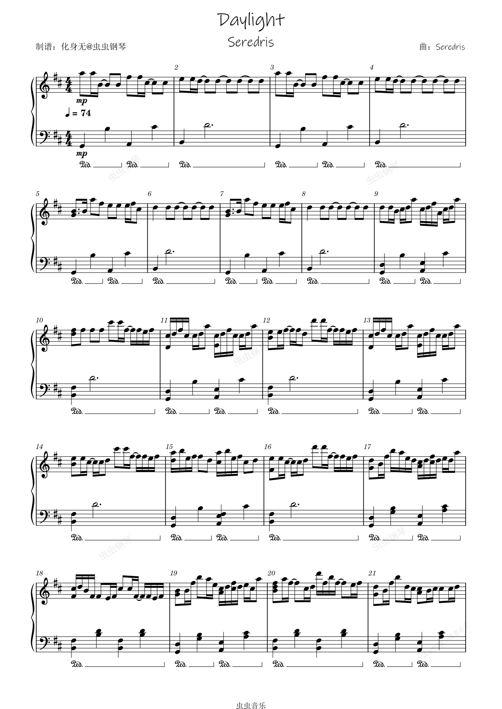 钢琴谱:Daylight 原调独奏版 化身无编配